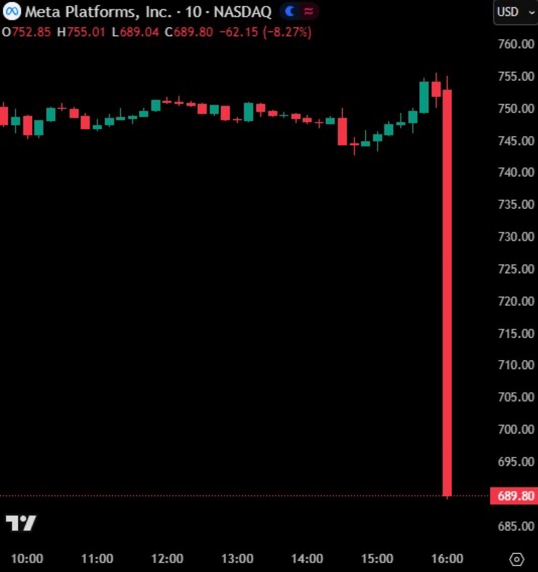 Meta's shares fell more than 8% in after-hours trading after reporting earnings per share of just $1.05, well below the expected $6.67.