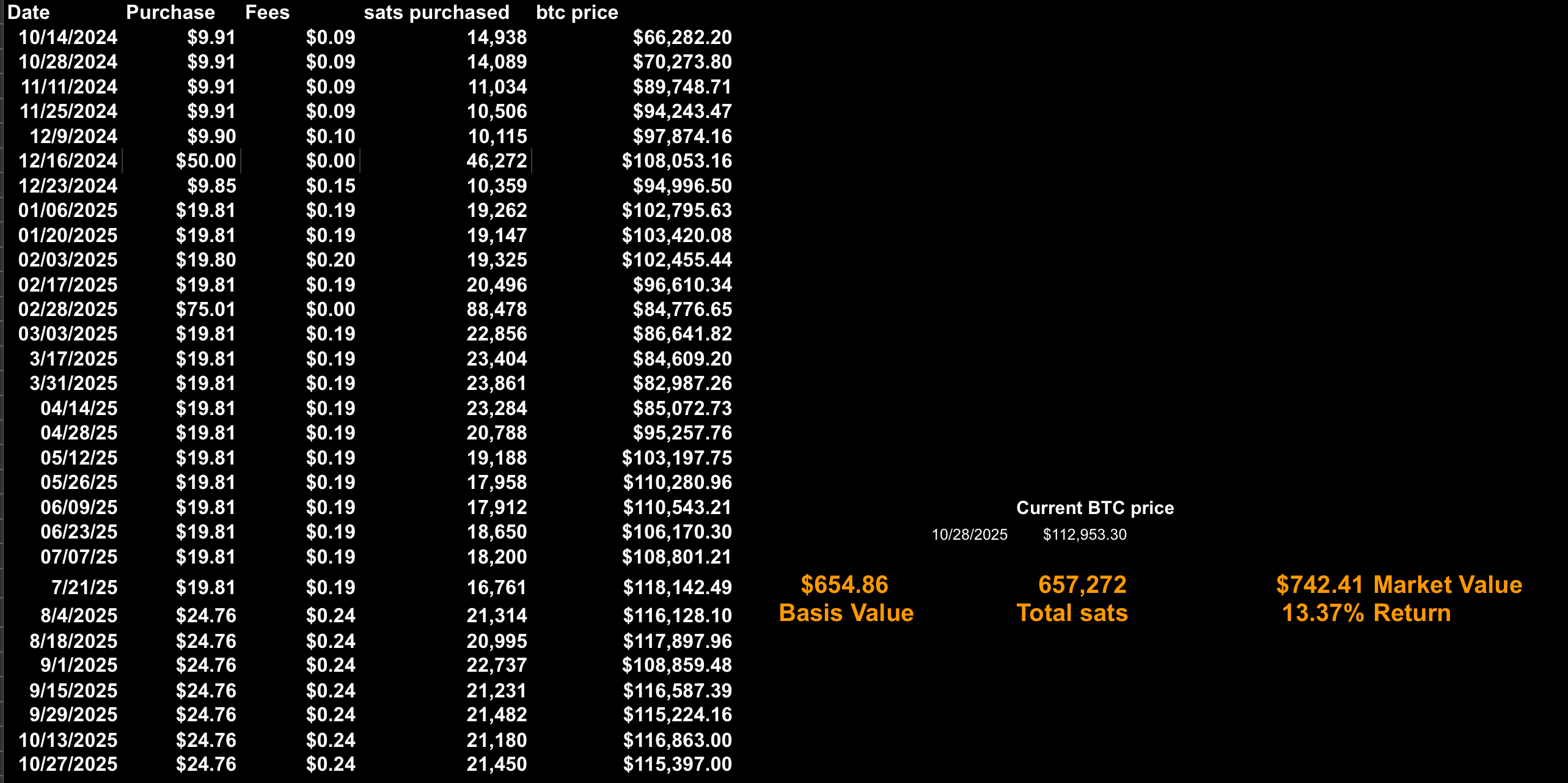 Nothing to note here. Still DCA’ing Still doing $100 a month