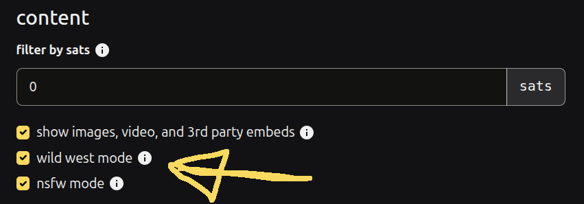 Wild west mode is turned off by default. When you turn it on, you see outlawed content and you see it as if it wasn't downranked.