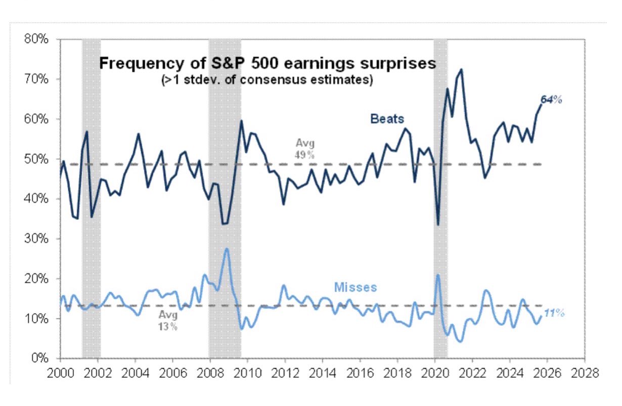 As of October 30th, 64% of S&P 500 companies exceeded profit estimates, well above the historical average of 49%.