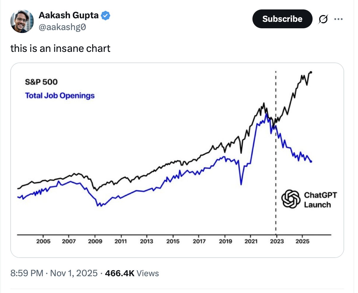 Which do you think is responsible for the rather wild divergence between public equities and job openings?