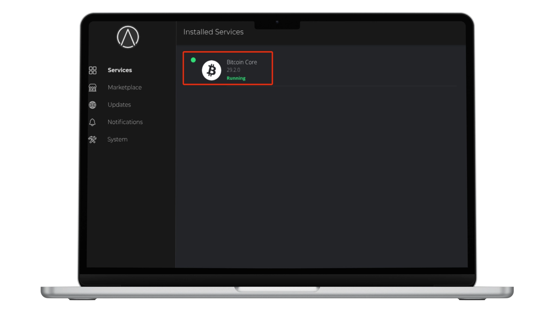 Bitcoin Core, which integrates natively with StartOS and allows for connection with wallets like Specter, Sparrow, or Electrum for a self-custody setup. An alternative, Bitcoin Knots, is also available through the Community Registry.To install Bitcoin Core, navigate to the Marketplace. Under the default registry, find and install the Bitcoin Core service. After installation, a