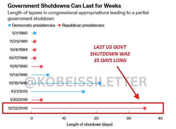 The expectation now is that the shutdown will last until December 1st — 61 days, almost double the previous record.
