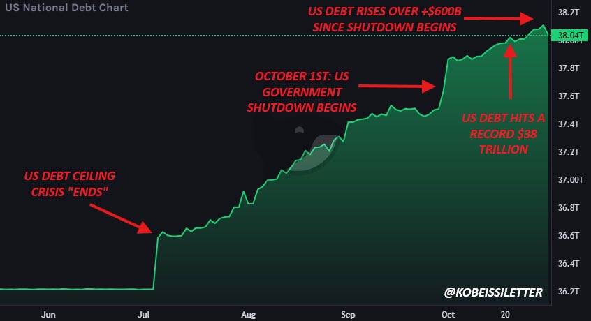During the shutdown, the debt skyrocketed by US$600 billion.