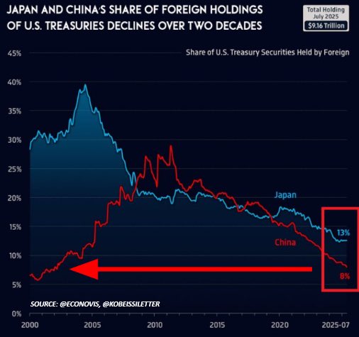 The Chinese share among foreign holders has fallen to 8%, the lowest level in 22 years.