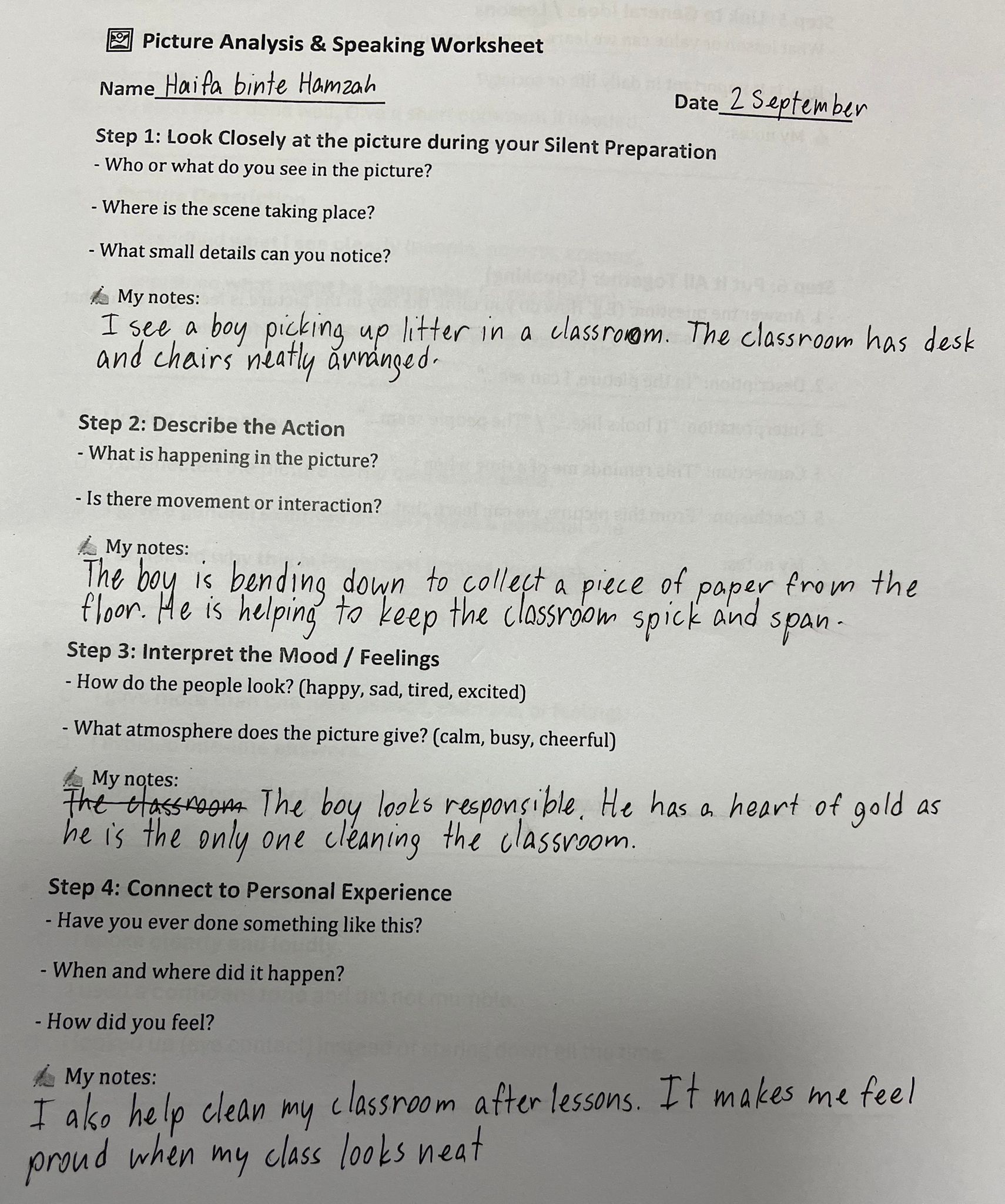 - Systematic way to interpret the picture empowers students to frame their thoughts logically.