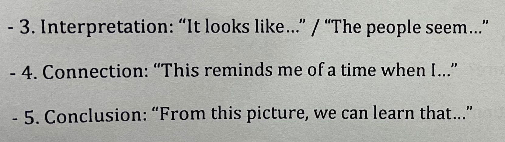 - Sentence starters enable them to transition from general picture description to weaving in engaging personal experiences.