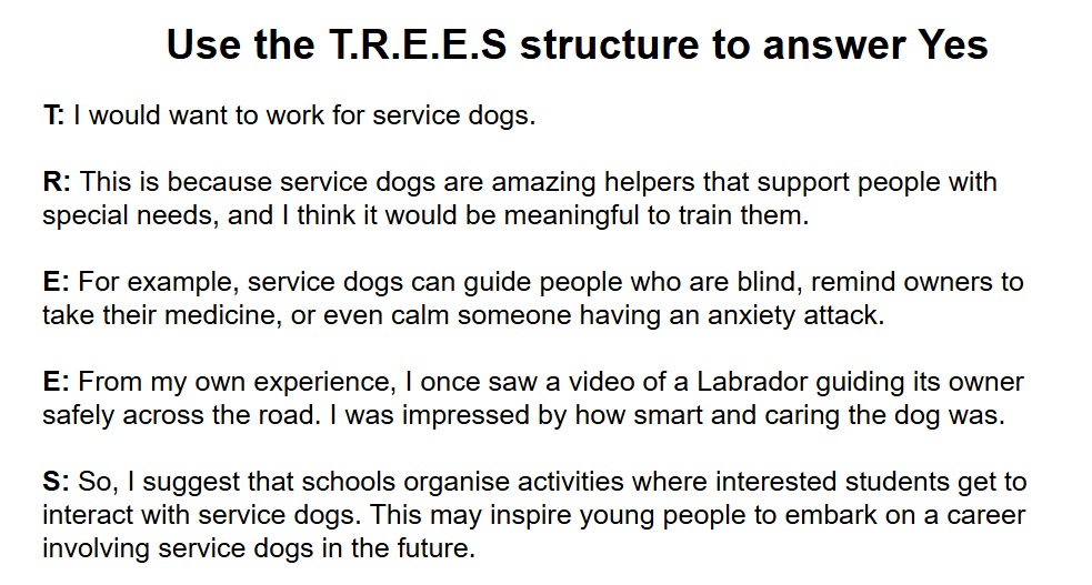 - Consistent use of an answering structure (i.e., T.R.E.E.S) & sentence starters encourages students to express their opinions confidently & display critical thinking.