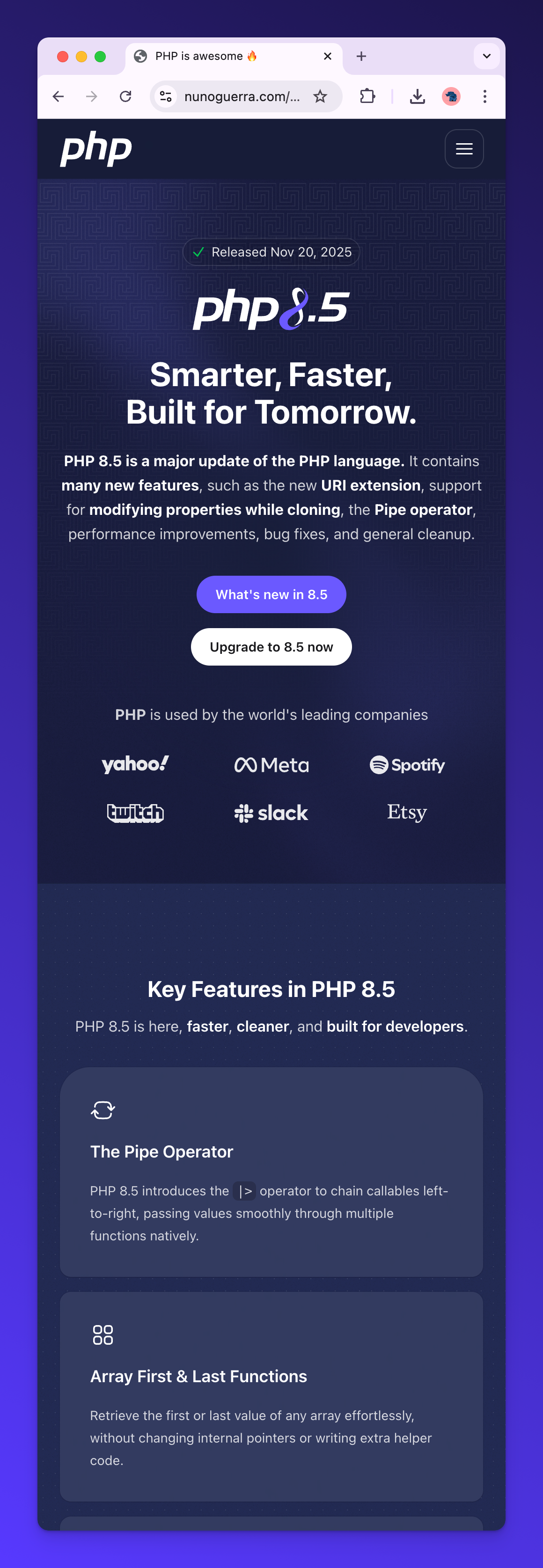 Over the last few weeks we ran a focused community contest to refresh the PHP 8.5 release page. Thank you to everyone who submitted, reviewed, voted, and discussed.