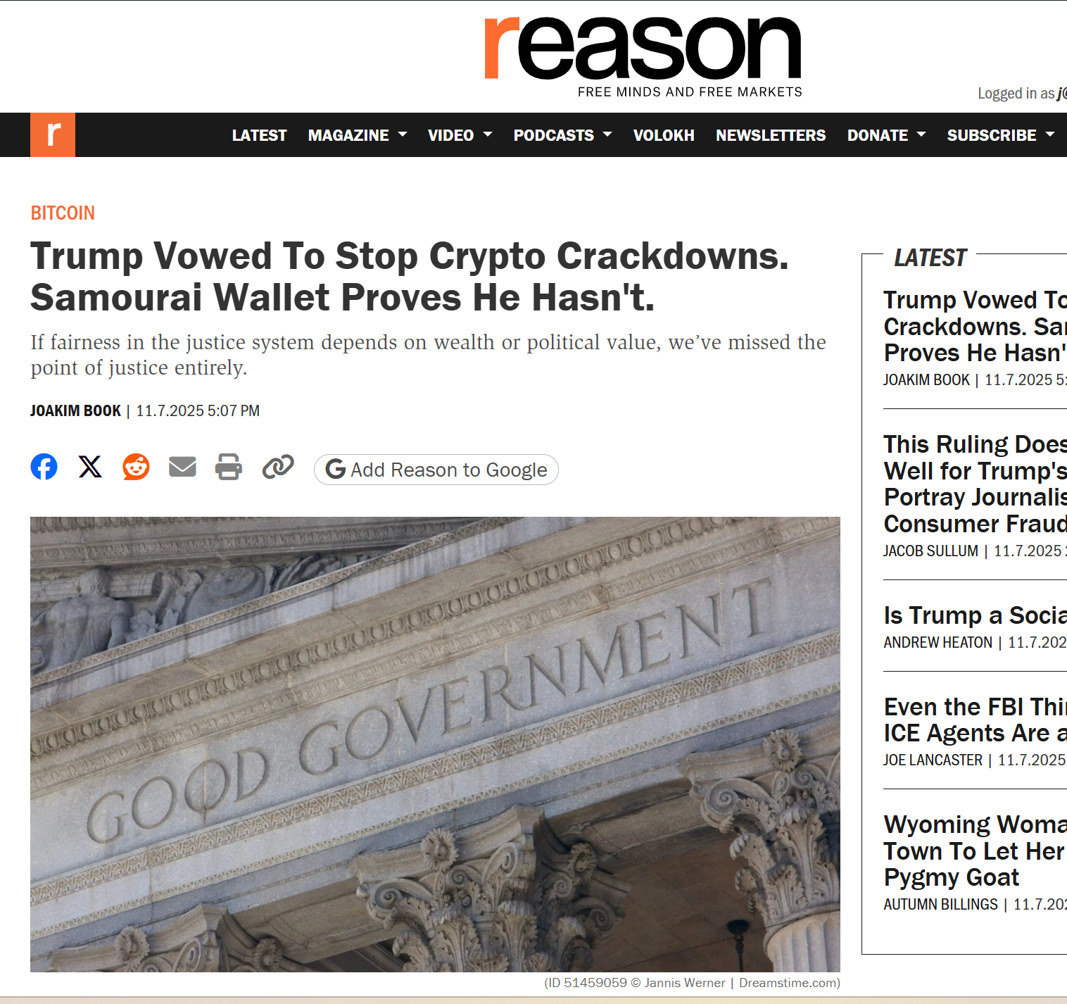 In the TD Bank money-laundering scandal in 2024, the Justice Department collected the largest penalty ever imposed under the Bank Secrecy Act for poor compliance practices that allowed far more illicit funds to flow through its dollar-based system than the amount of bitcoin that ever ran through Samourai. Notably, nobody went to jail for that crime, even though bank employees were bribed tens of thousands of dollars to look the other way while criminal networks laundered more than a billion dollars of illicit funds through a top-10 bank in America.
