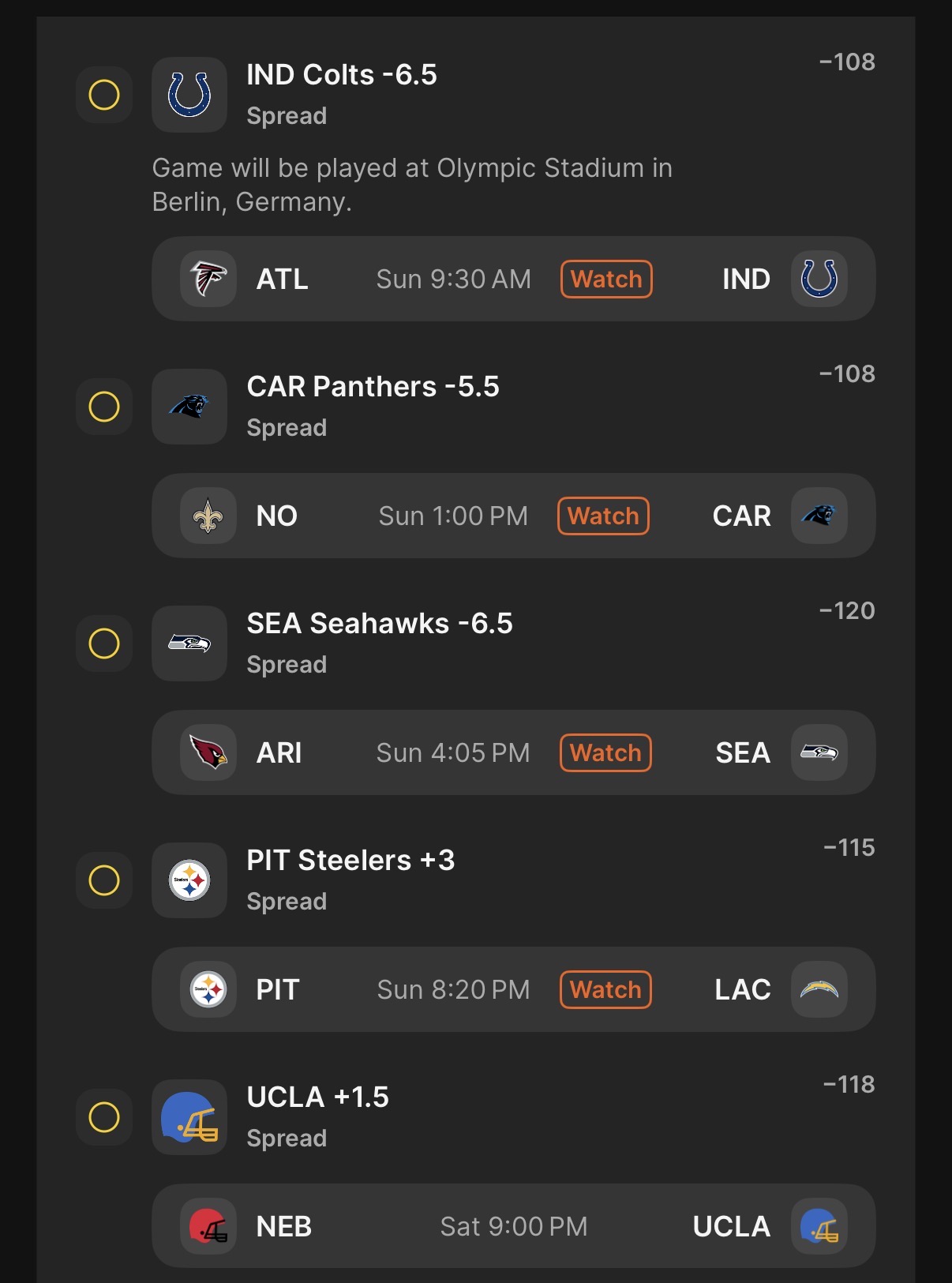 I am locked and loaded going with $0.50 for each game plus the parlay for all 5