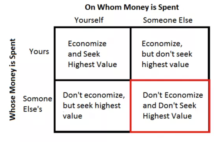 I'm helping out with a neighborhood holiday party, and was struck by this situation, which illustrated really nicely one of the quadrants in Milton Freedman's "Four Ways To Spend Money"
