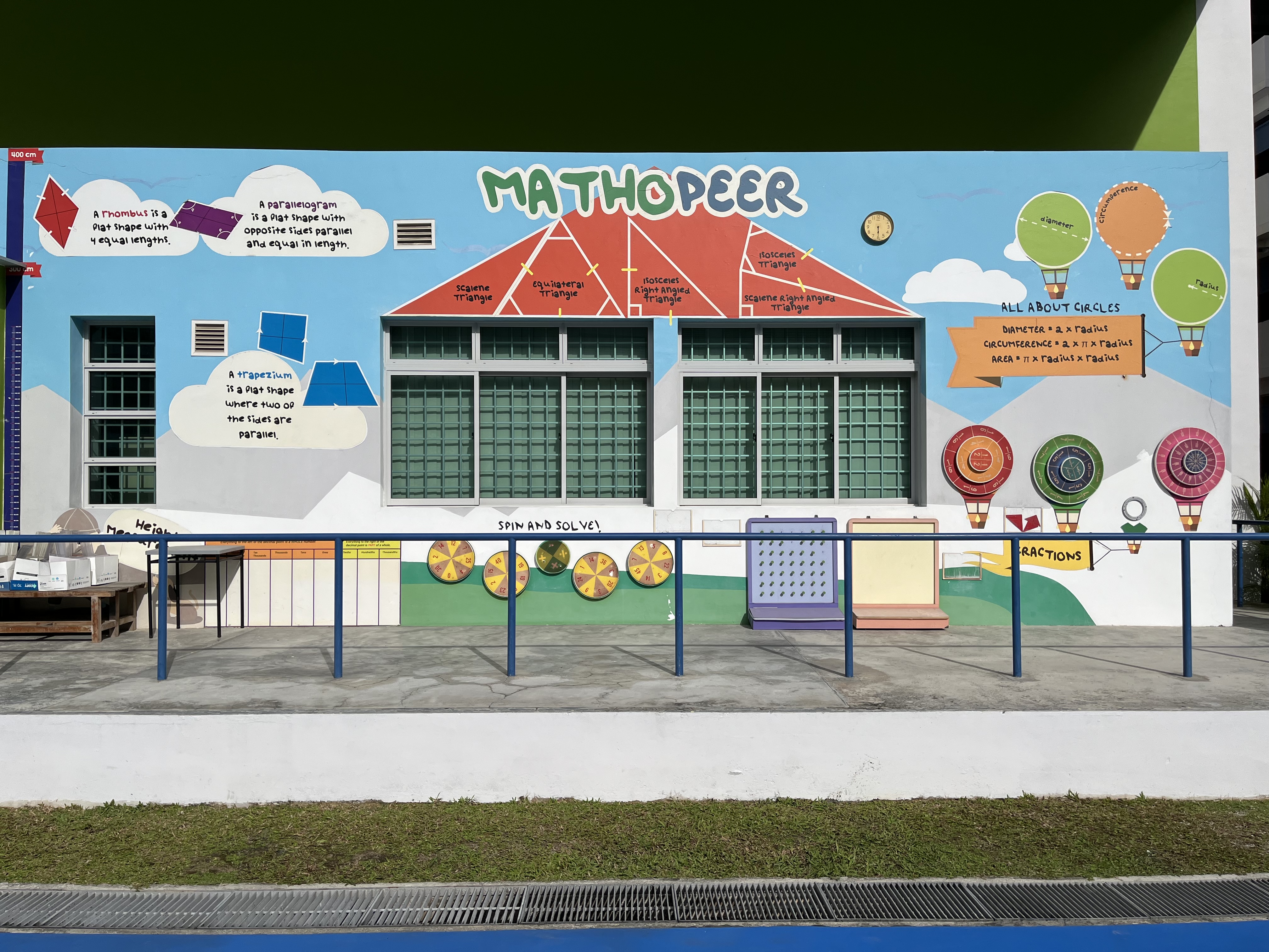 Given how conformist Singapore’s educational system is, it never fails to intrigue me how each school strives to do something that is different from the norm and build its unique identity. Same same, but different. For this primary school, the hydroponics garden in the canteen caught my attention. So did the colourful wall that was decorated with Maths formulae.