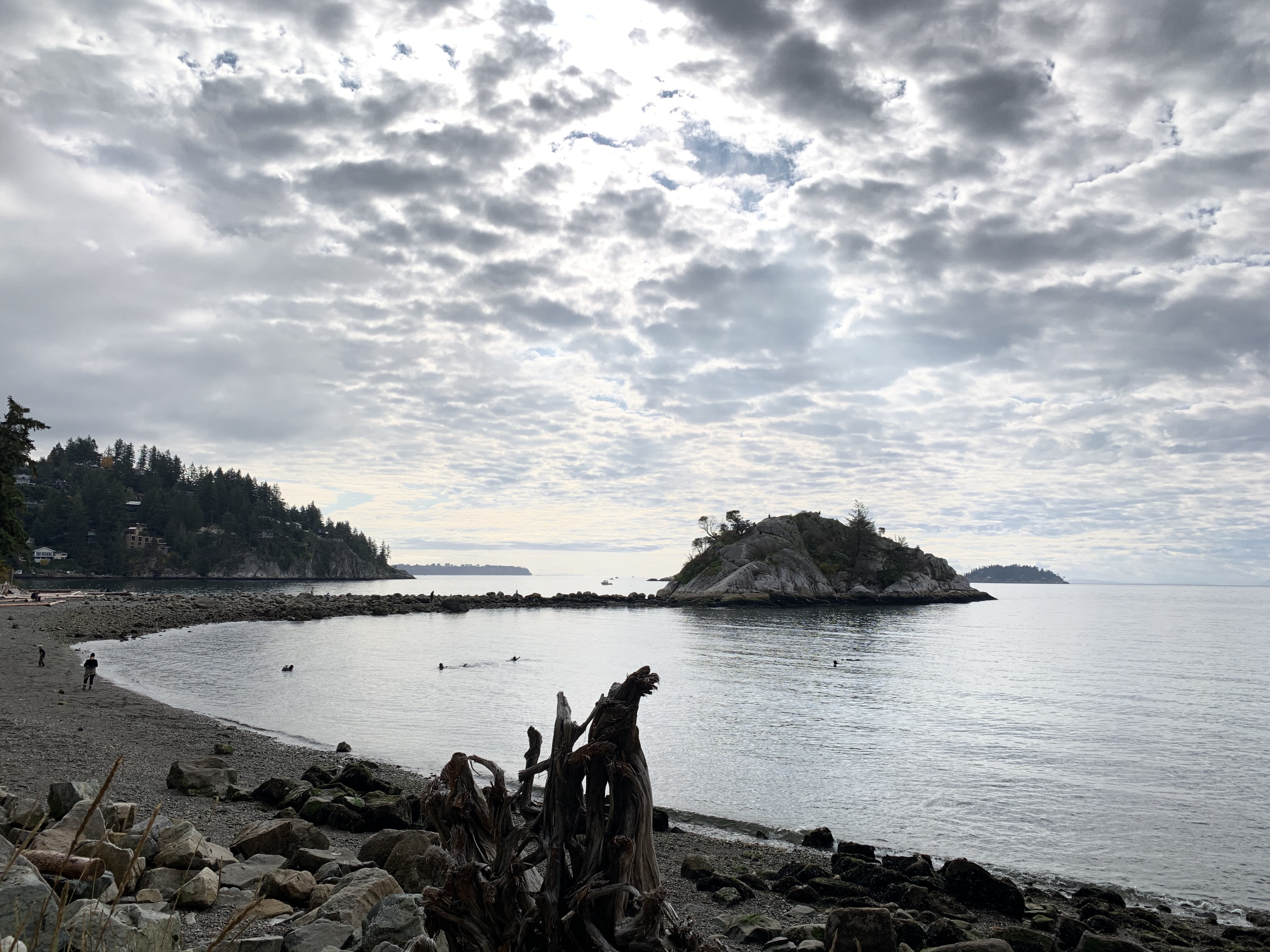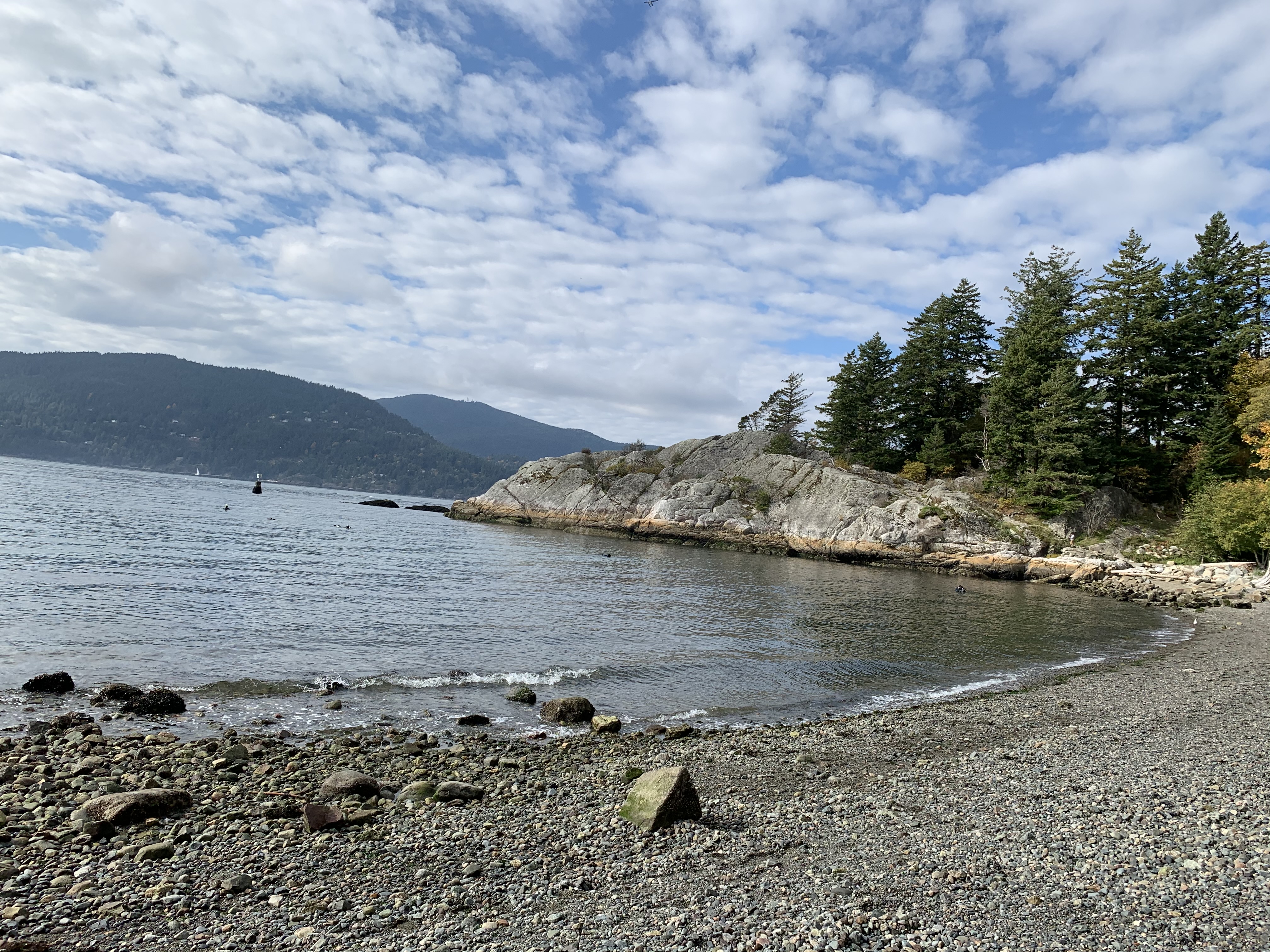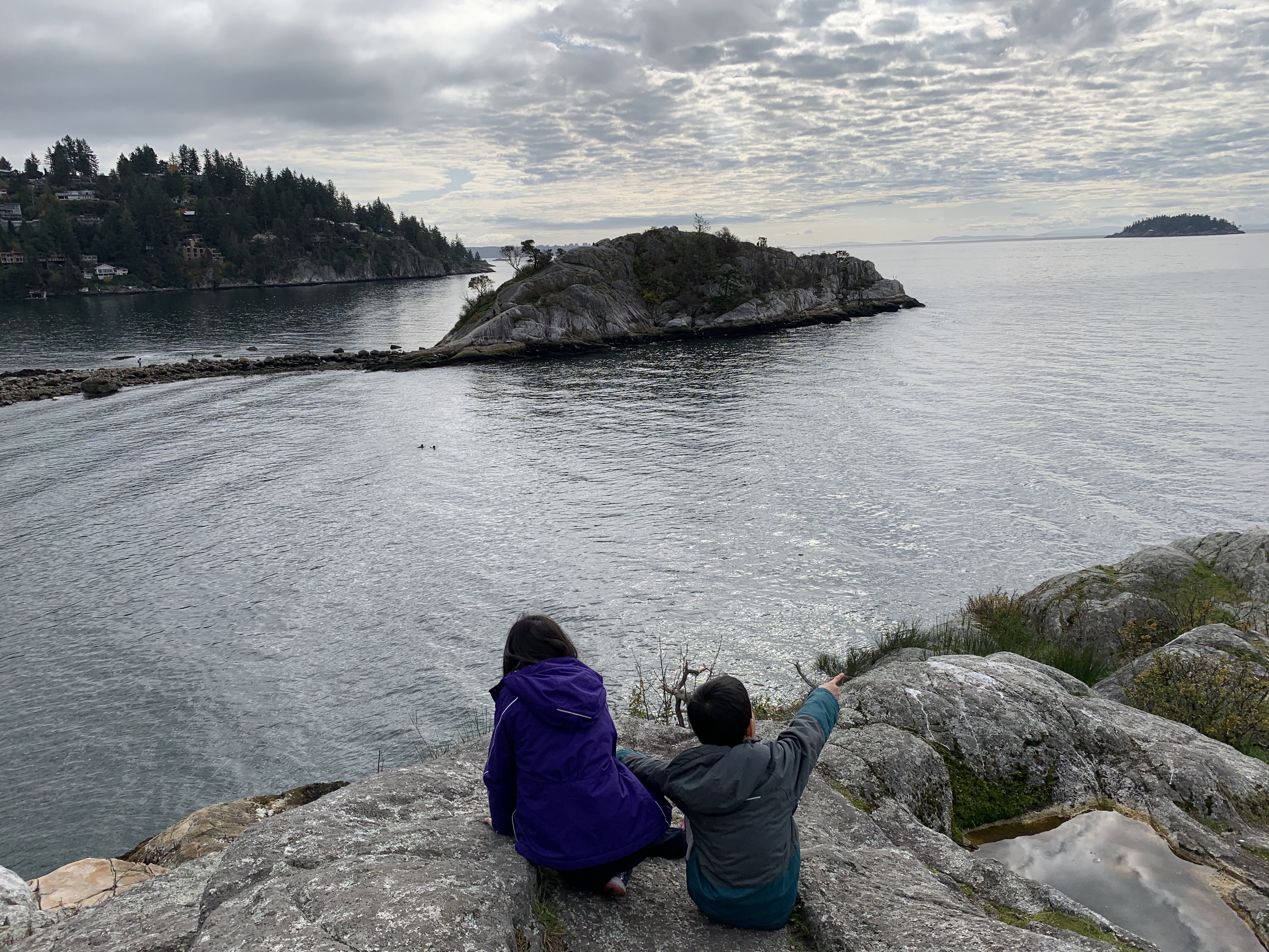 This week we head to Whytecliff Park, located near Horseshoe Bay in West Vancouver, BC. Equipped with picnic tables, a playground, and a beach, the park is a popular place, especially on a fair weather day, for gatherings, kids play, and short hikes. It is also popular amongst scuba divers and they can be often spotted entering or leaving the water via the beach. Whenever we visit the park, we start with the playground and would eventually make our way down to the beach using the beach trail. One obvious landmark once you reach the beach is Whyte Islet located to the southeast of the beach. The islet is connected to the mainland by a land bridge that submerges under water on high tide, making the islet only accessible by foot during low tide. One time, we hiked towards the cliffs to the west of the beach to observe the views of the beach and the islet from high up. We also like to cross the land bridge and hike up Whyte Islet each time we visit, provided that the tides cooperate. We usually end the visit by finding and catching little crabs at the beach, which we release after playing with them for a while.
