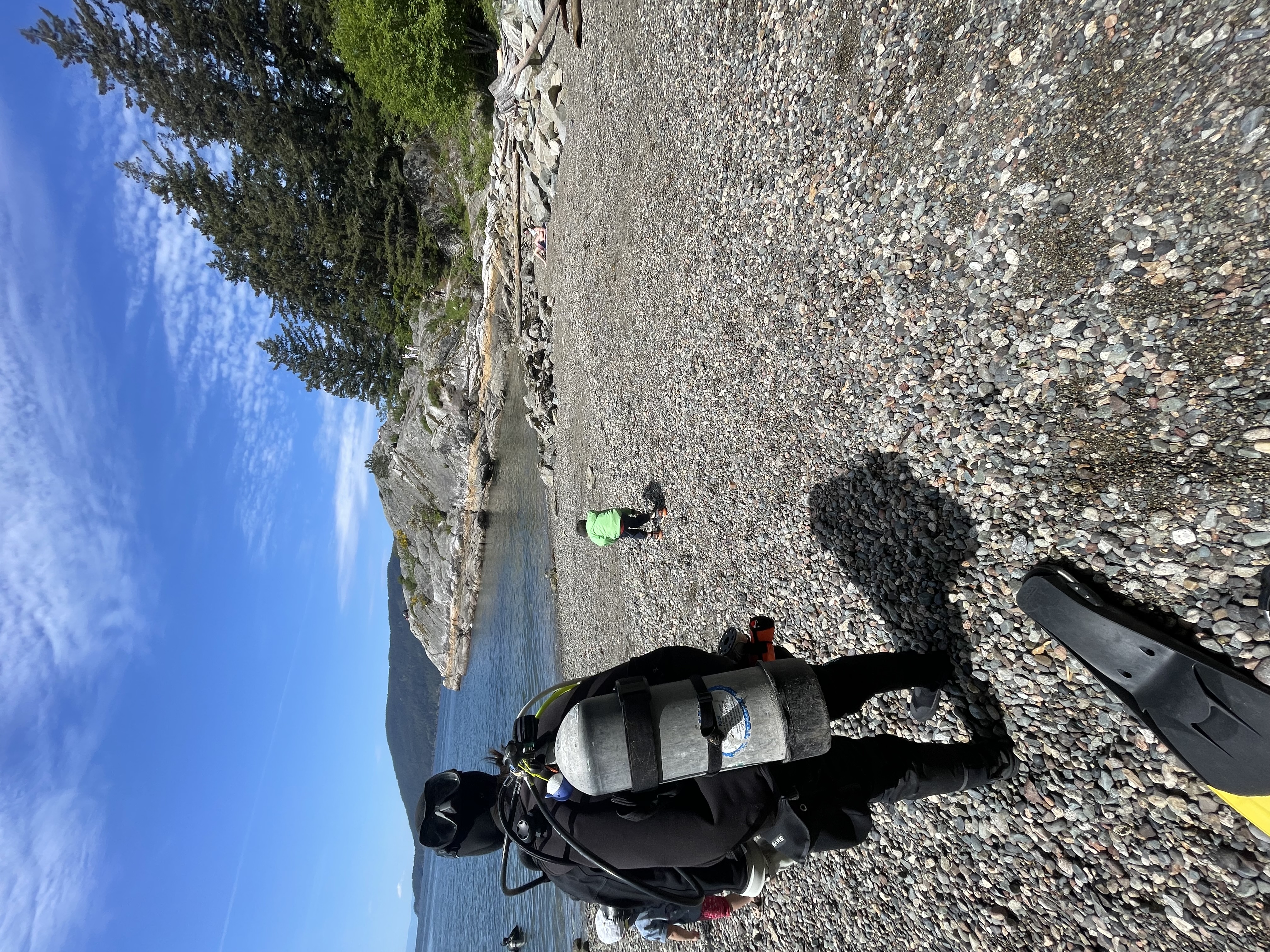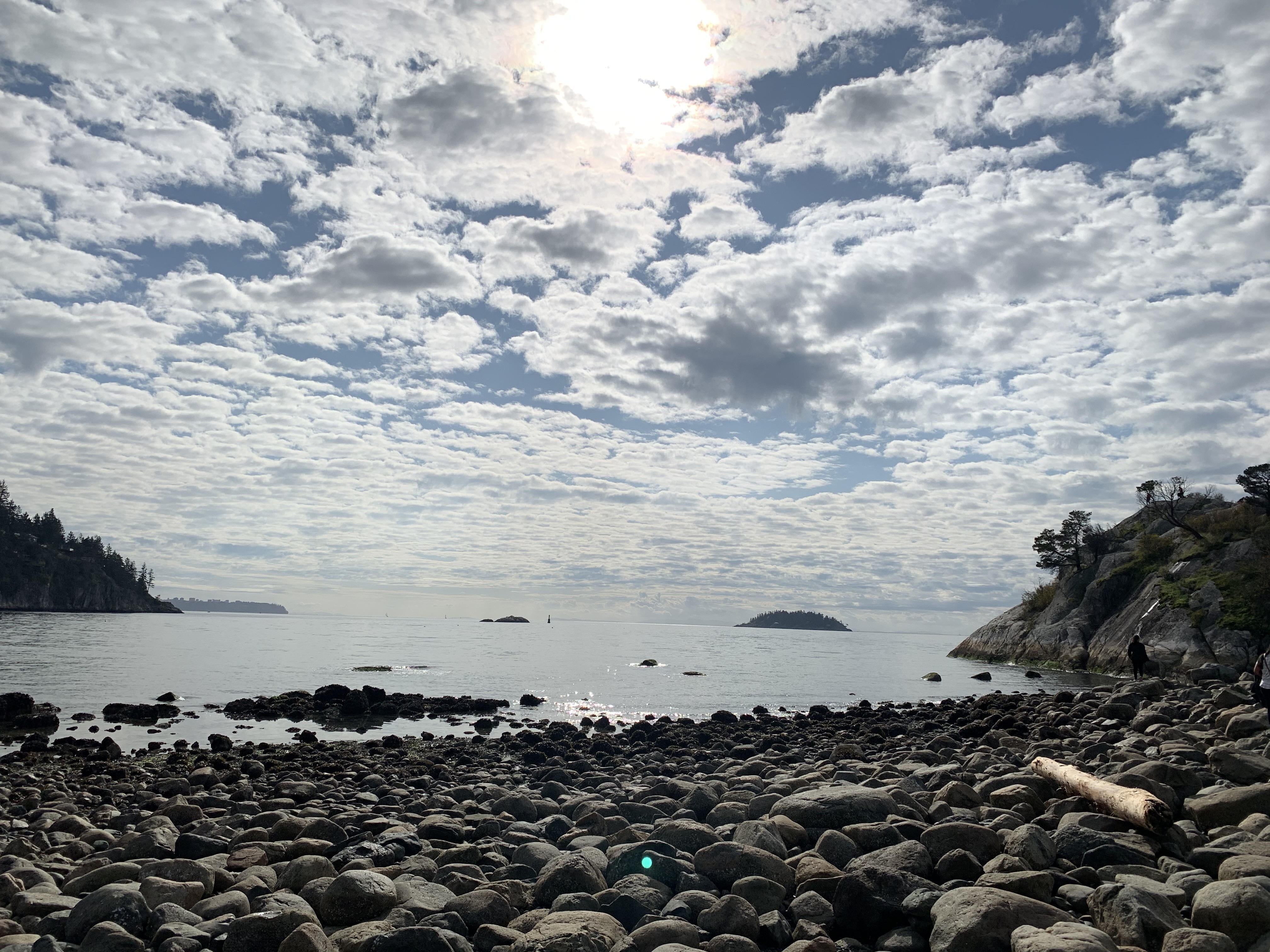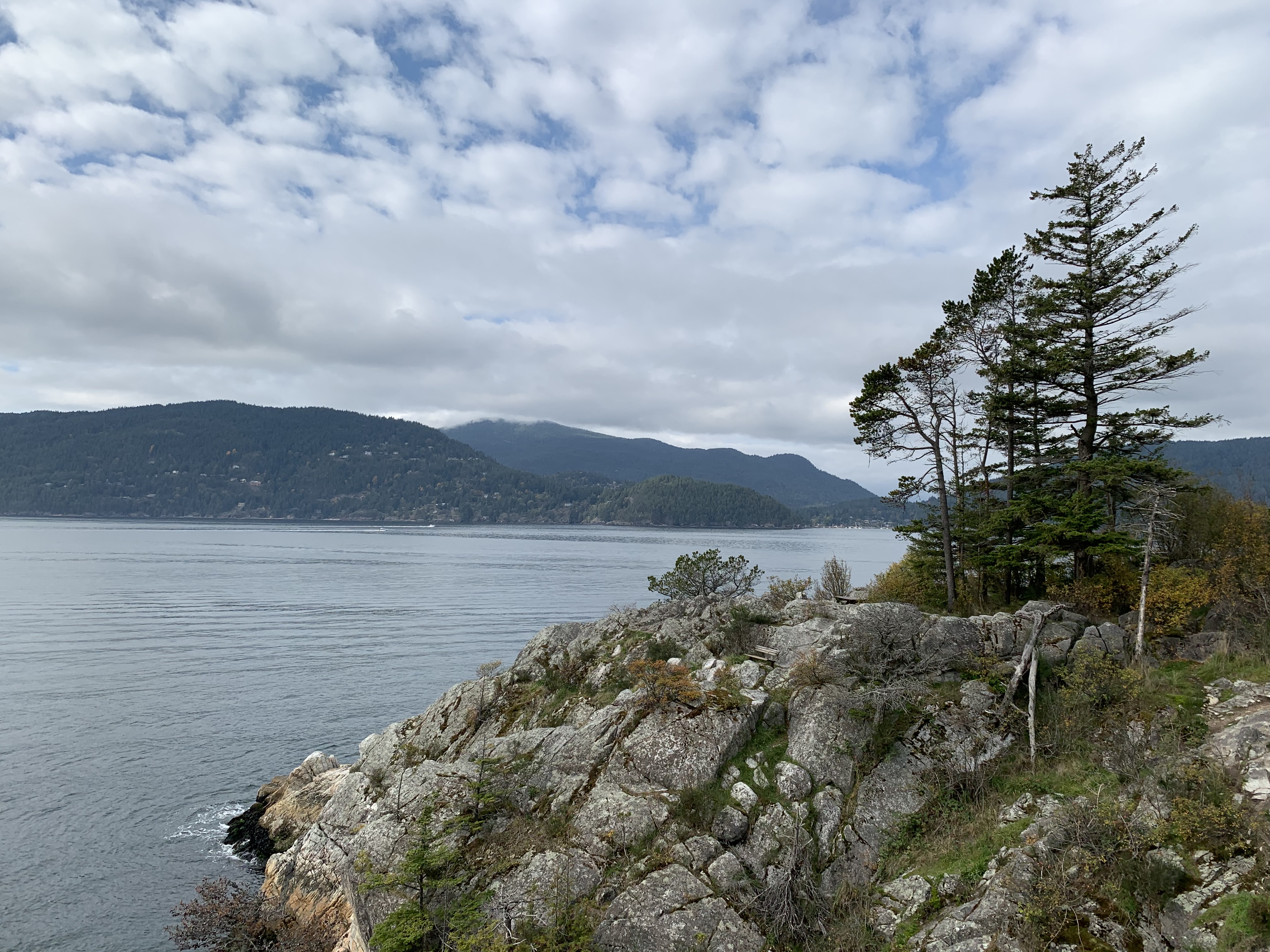 This week we head to Whytecliff Park, located near Horseshoe Bay in West Vancouver, BC. Equipped with picnic tables, a playground, and a beach, the park is a popular place, especially on a fair weather day, for gatherings, kids play, and short hikes. It is also popular amongst scuba divers and they can be often spotted entering or leaving the water via the beach. Whenever we visit the park, we start with the playground and would eventually make our way down to the beach using the beach trail. One obvious landmark once you reach the beach is Whyte Islet located to the southeast of the beach. The islet is connected to the mainland by a land bridge that submerges under water on high tide, making the islet only accessible by foot during low tide. One time, we hiked towards the cliffs to the west of the beach to observe the views of the beach and the islet from high up. We also like to cross the land bridge and hike up Whyte Islet each time we visit, provided that the tides cooperate. We usually end the visit by finding and catching little crabs at the beach, which we release after playing with them for a while.