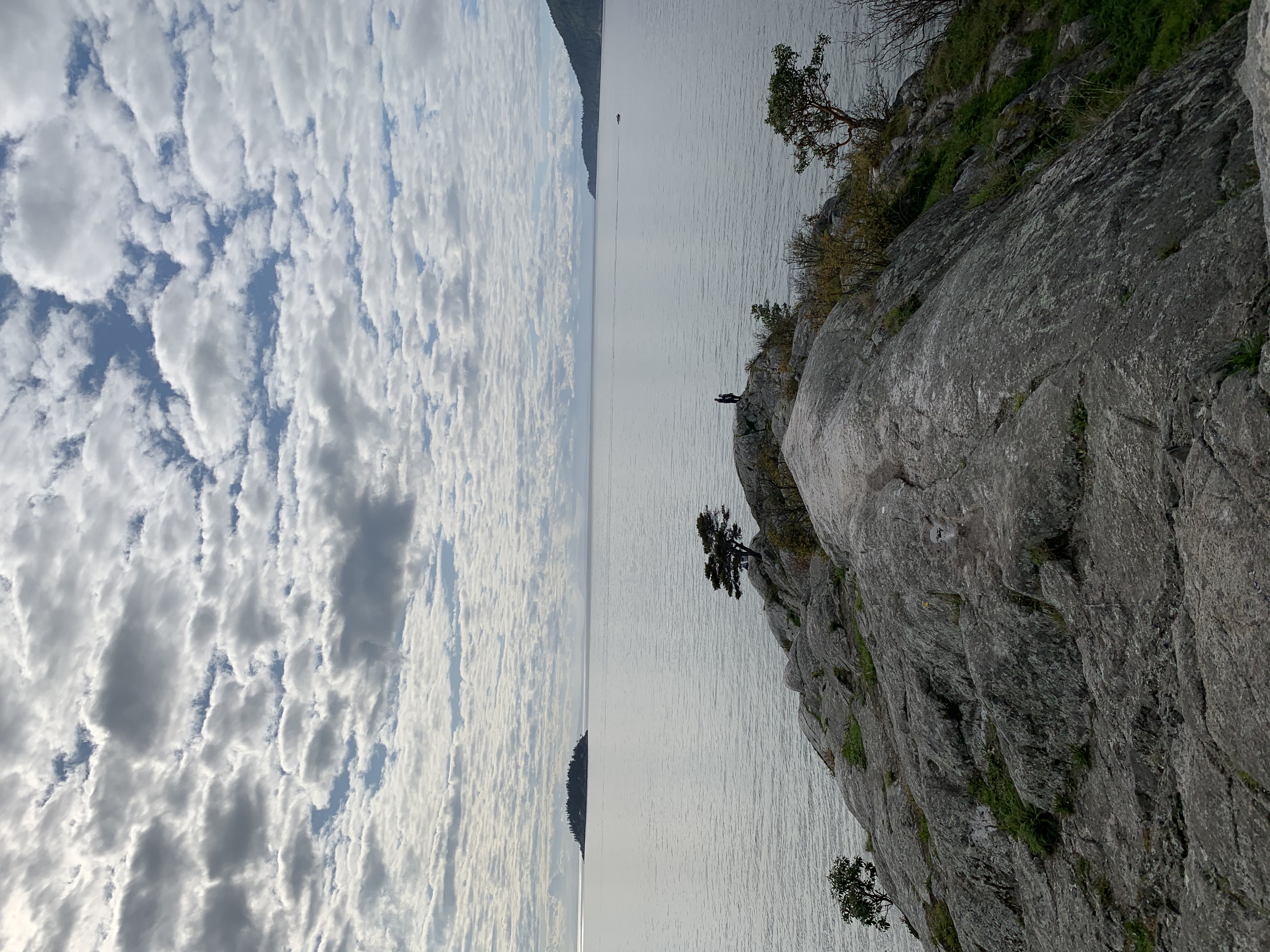 We saw a seal in the water. It's hard to spot in this photo, but it's the little black spot in the water.