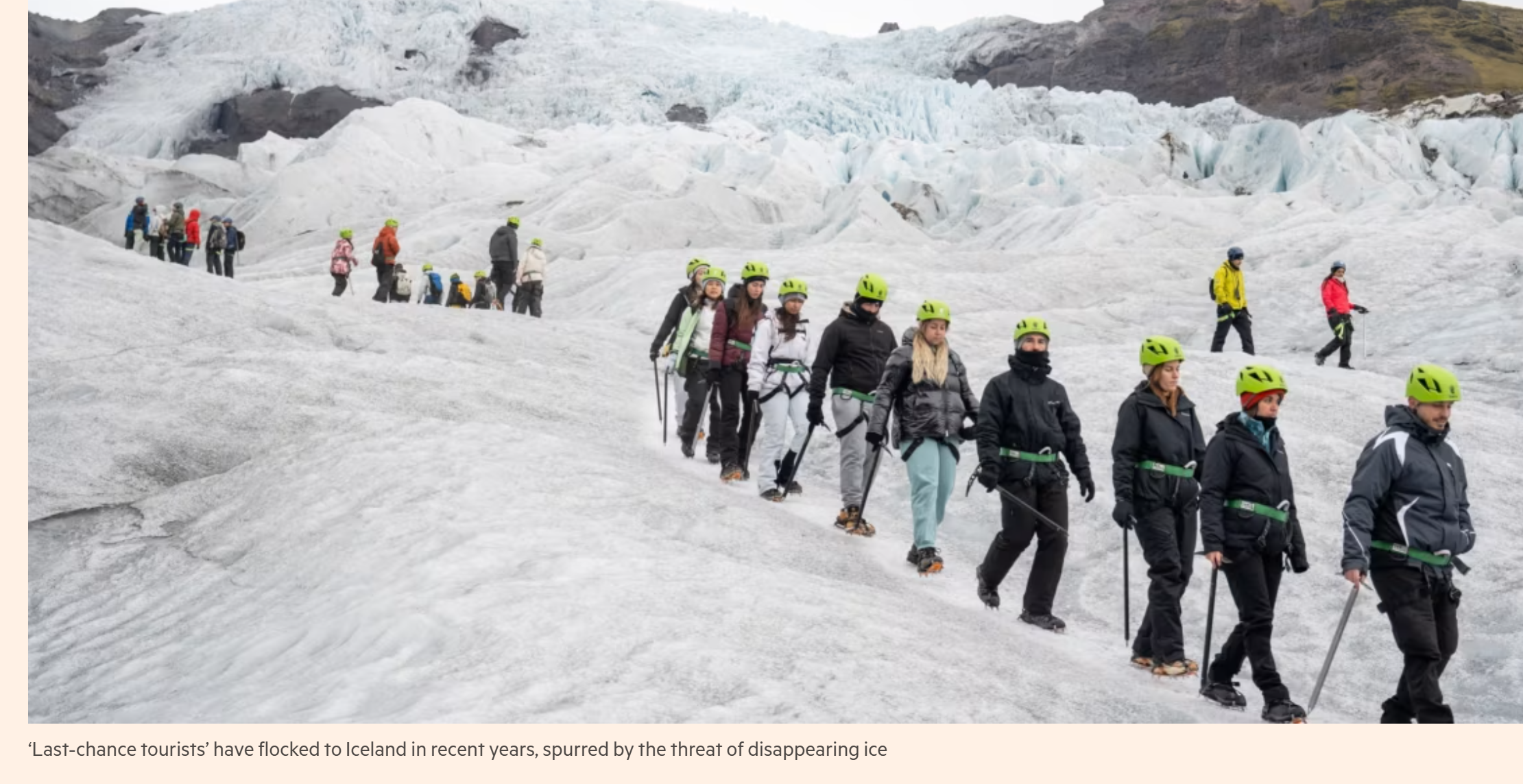 “Last-chance tourists” — travellers seeking to see the glaciers before they vanish — have flooded into the country in recent years, spurred by the threat of disappearing ice.