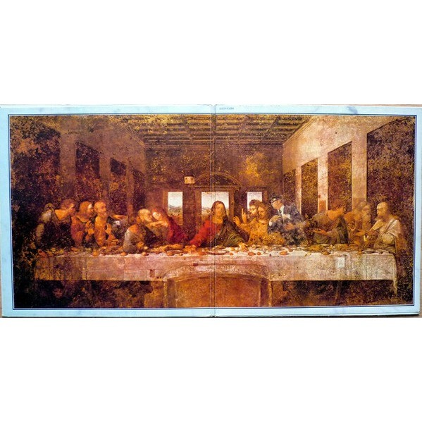 A gatefold sleeve with marbled effect and The Last Supper with a visitor
