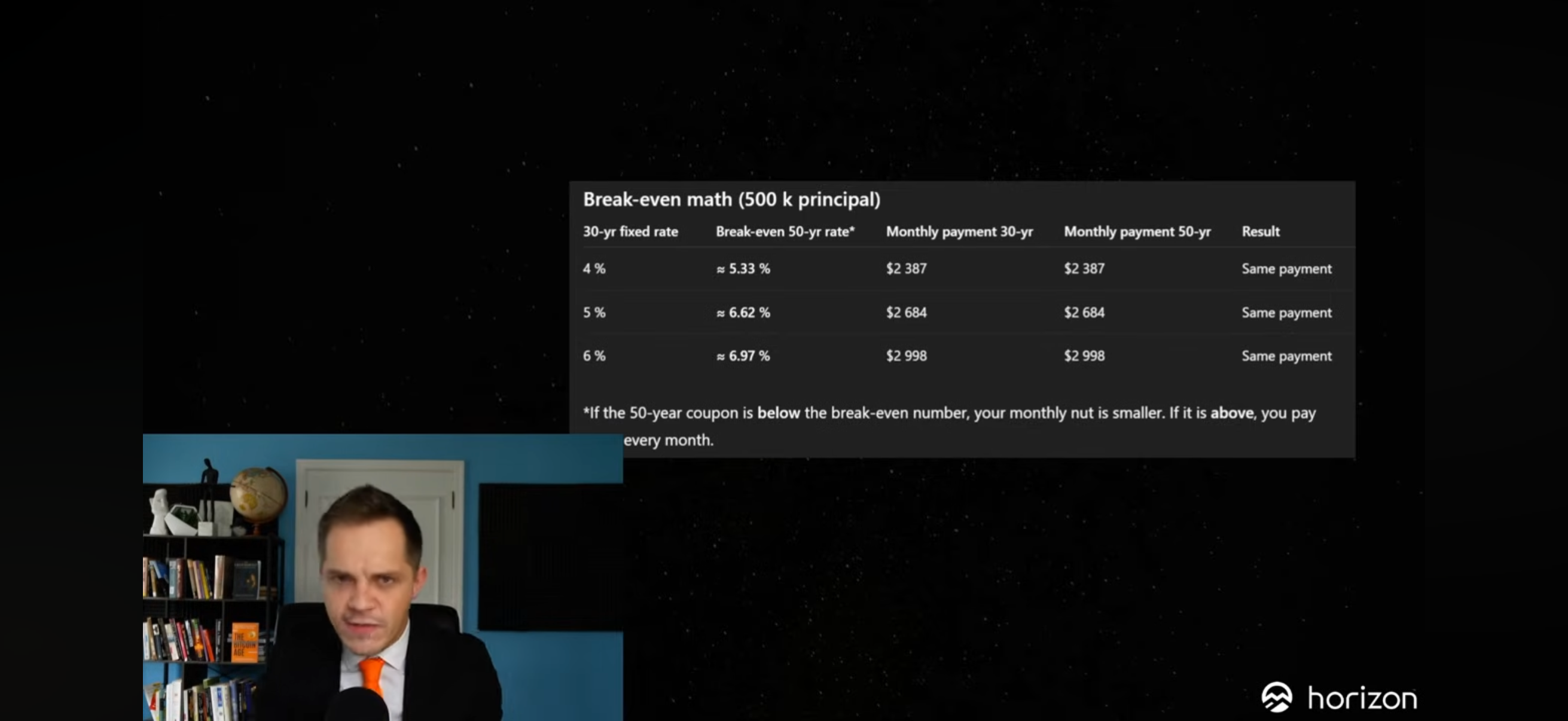The Break Even 50 year mortgage rates vs. 30 year fixed