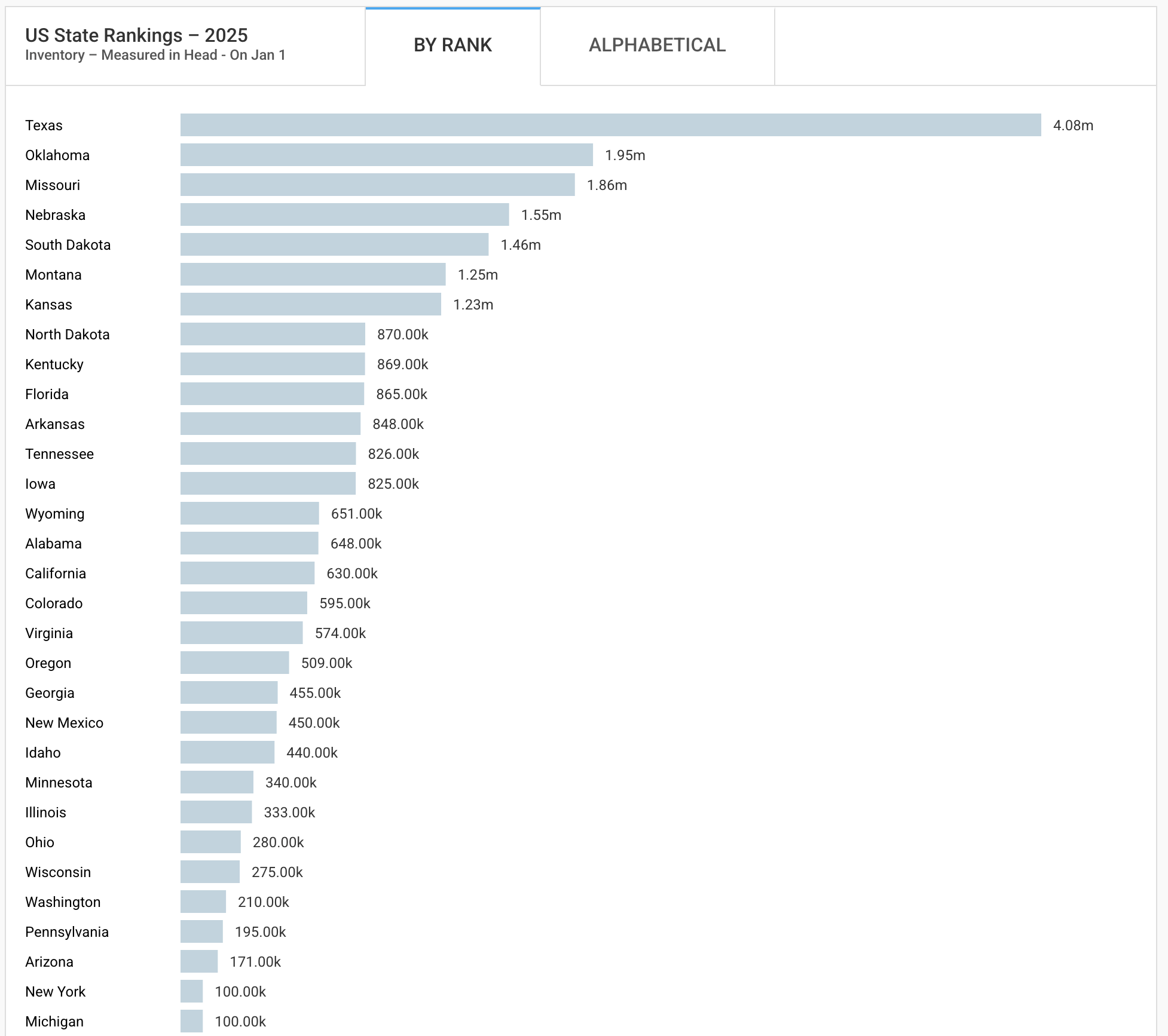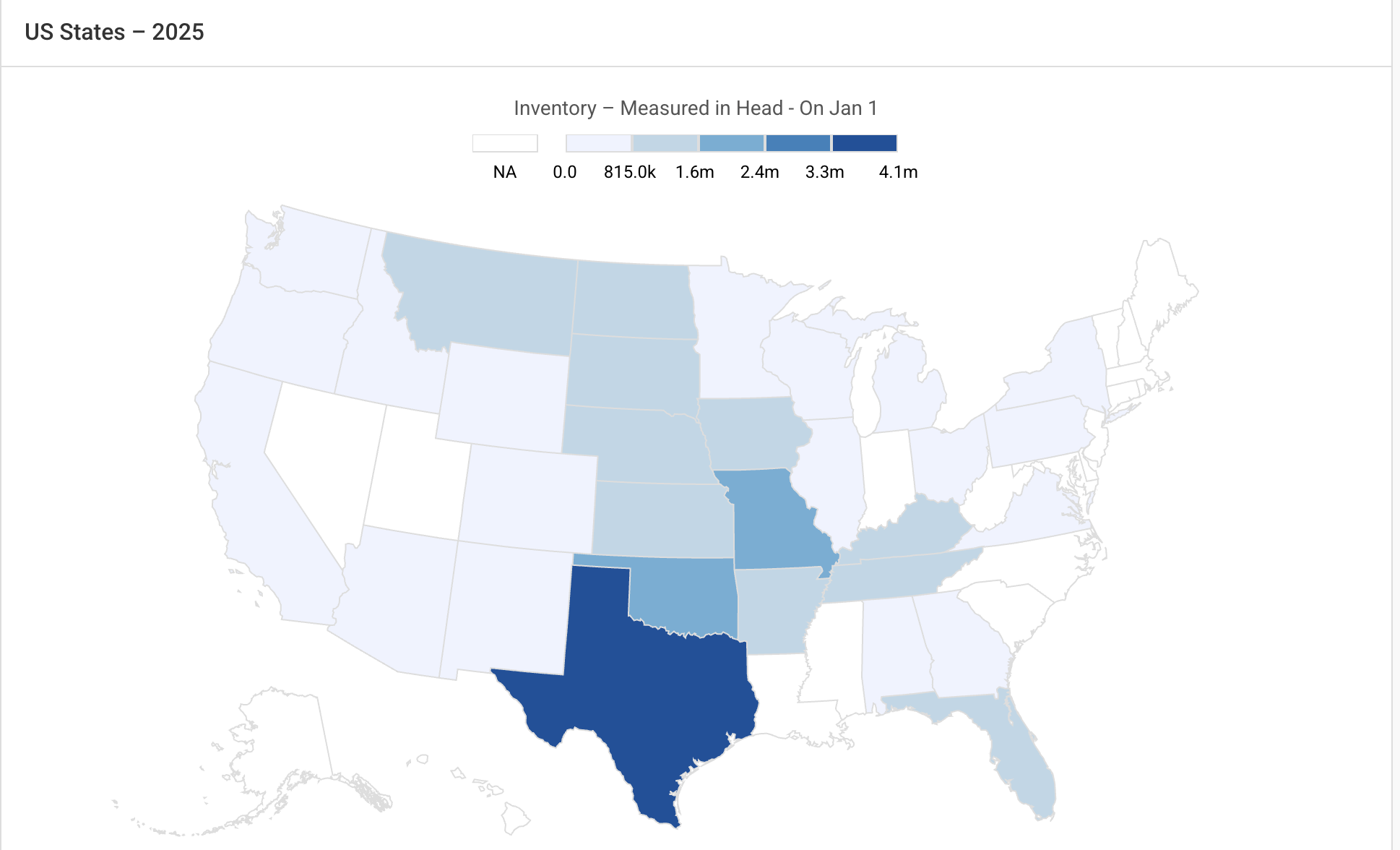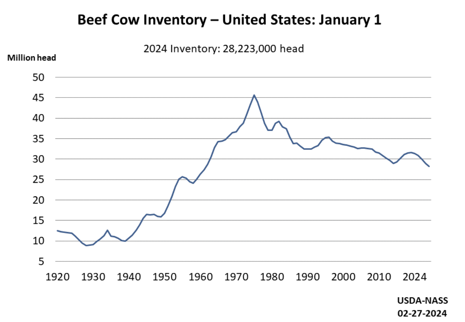 It looks like inventory has dropped a lot, but I'd guess we are producing the same or more pounds of beef just with fewer heads.