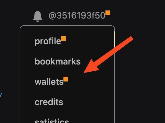 1. Click on your profile menu and select 'wallets'