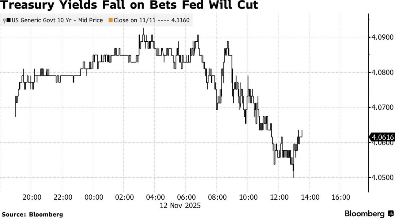 Treasury yields fell to 4.06% amid bets that the Fed may cut interest rates next month to support the labor market.
