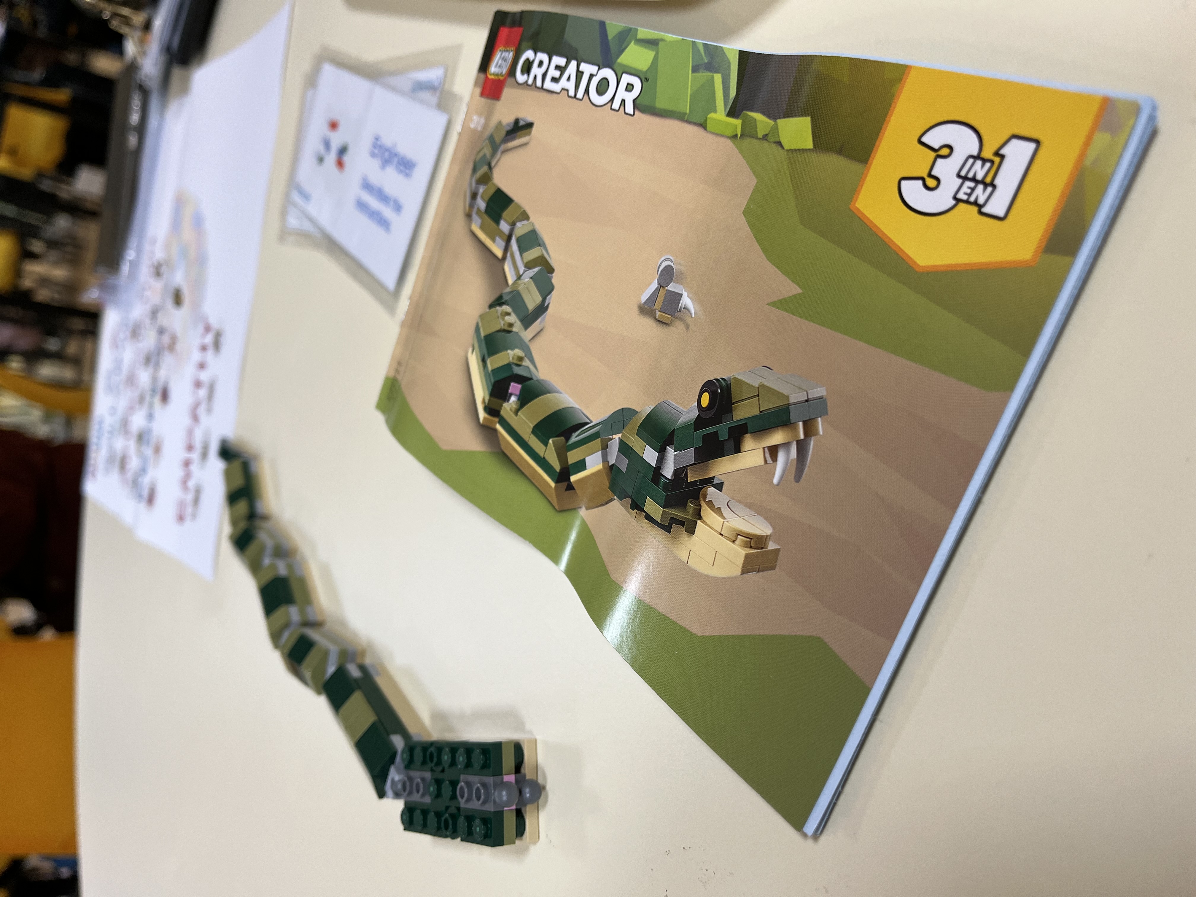 We stuck to our assigned role for three pages of the manual initially. As the Engineer, I found it difficult to describe the LEGO pieces. Fortunately, as my teammates and I proceeded with the building, we came to a common understanding as to how to address each type of block. Eventually, we finished building half of the snake within the designated time frame.