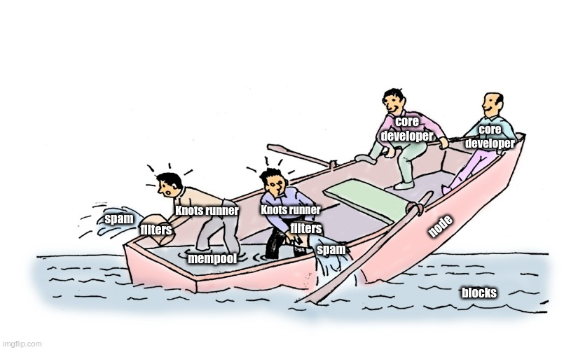 I wanted to make fun of both sides, but I think my depiction of the core developers is lacking. Maybe someone on Knots' side can help me create a meme that sums up the whole debate and makes fun of everyone. Or maybe @thebitcoinbugle?