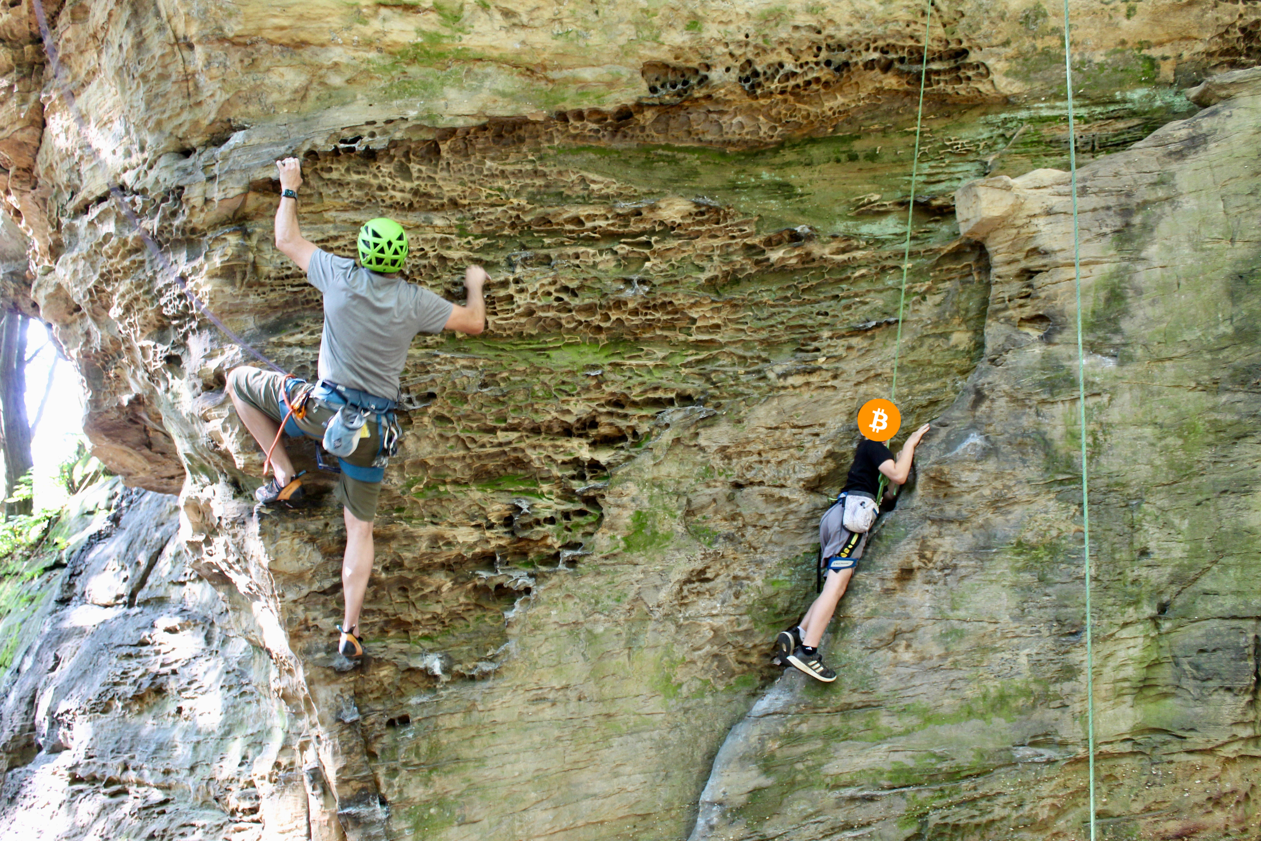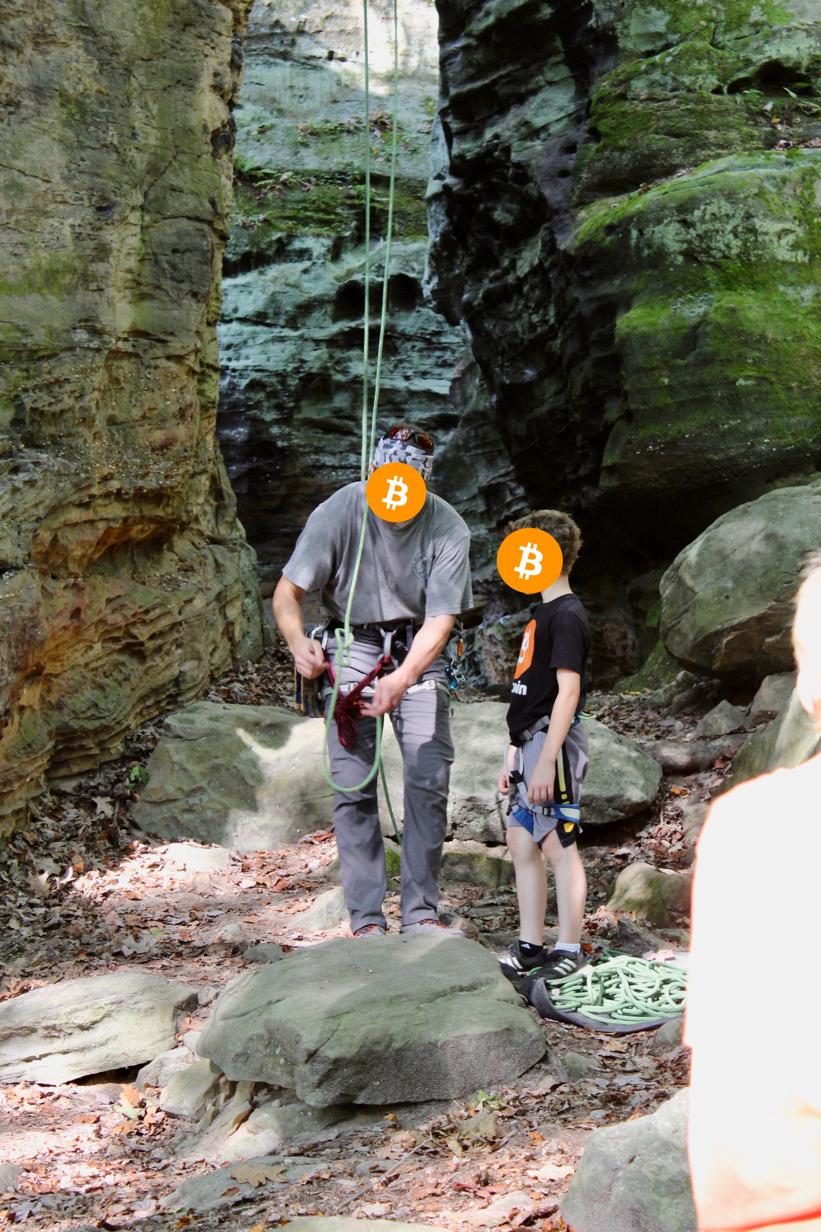 Now was time for the picnic's main event, top-rope rock climbing! The kids had a blast as they climbed up and down. The most difficult treasure (12,000 sats) was hidden high up on the rock wall, which was finally claimed by a courageous teenager.