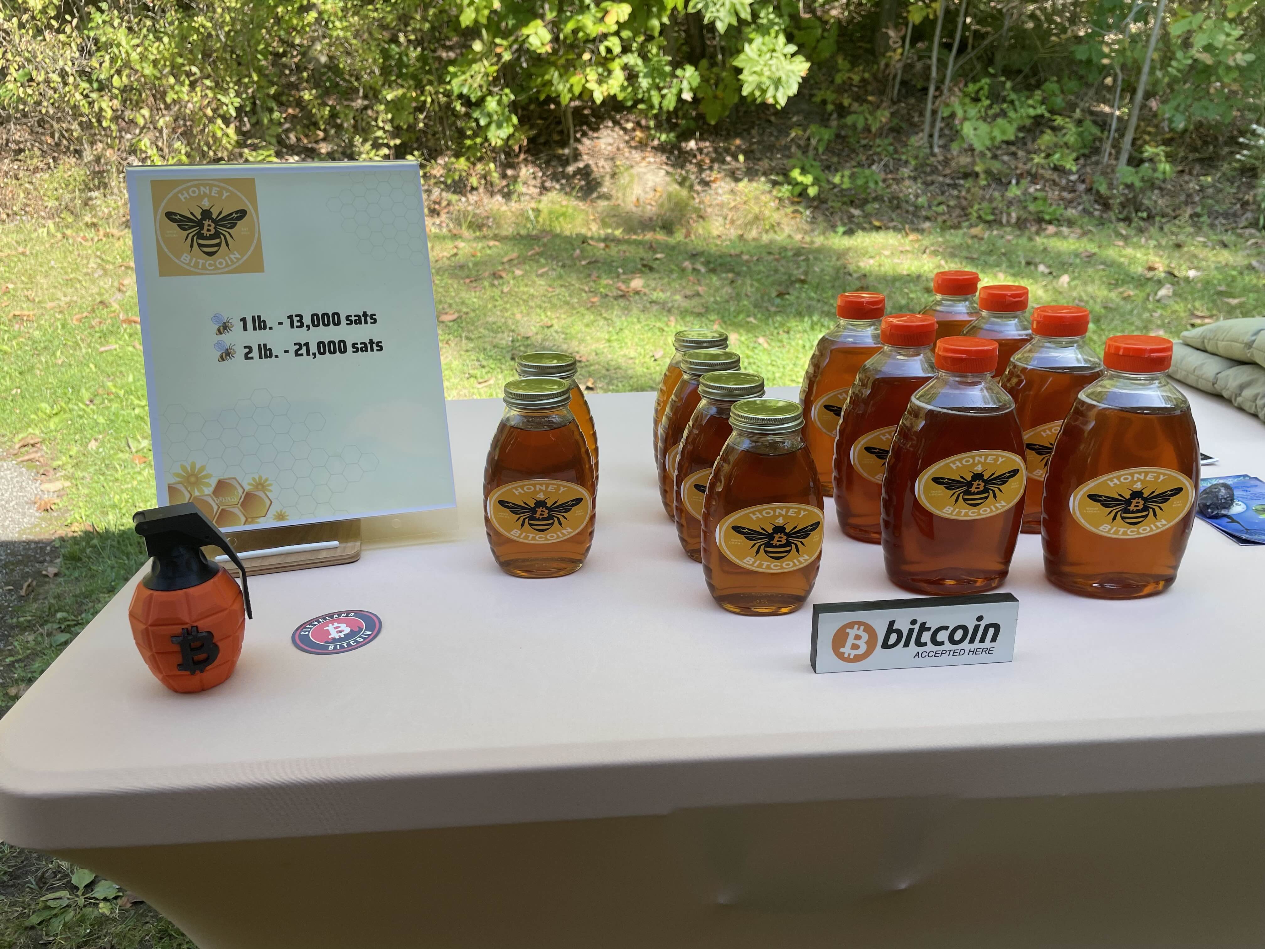 The raffle prizes were donated by Satoshi’s Sip, Soap Miner, BitcoinPainter, Born to be Free, Satoshi Coffee Co and Lawrence Leopard.