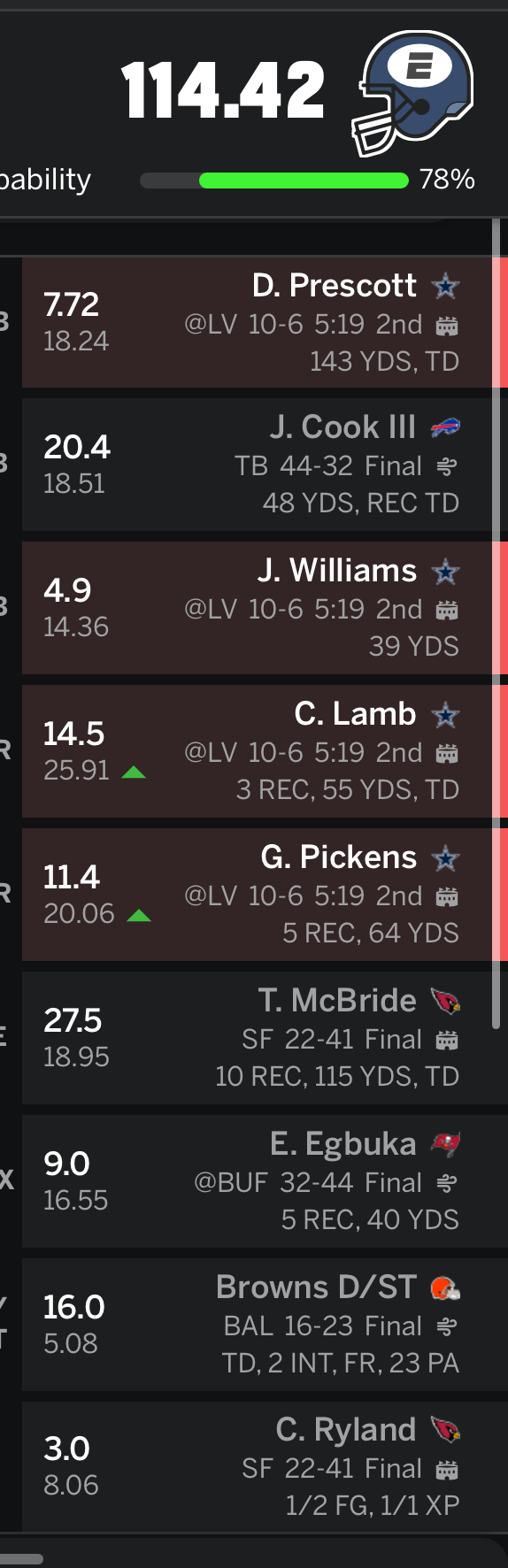 I went to bed 20pts clear with a win in my home fantasy league. My opponent had Pickens....