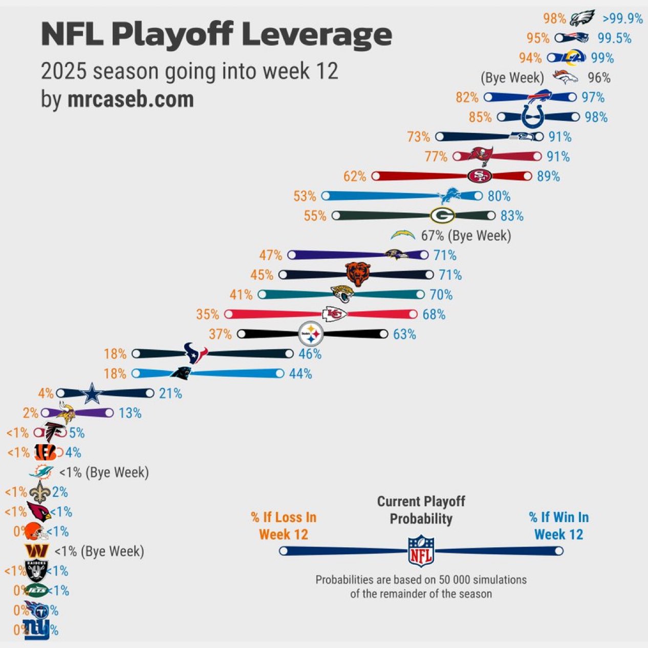 Some wild swings in playoff probabilities for a number of teams depending if they win or lose in Week 12.