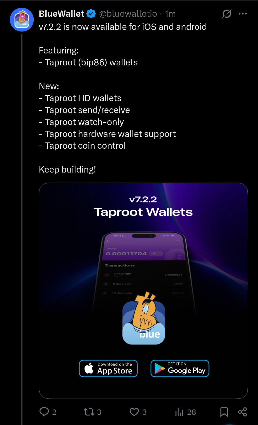 Blue Wallet v7.2.2 - Taproot wallets