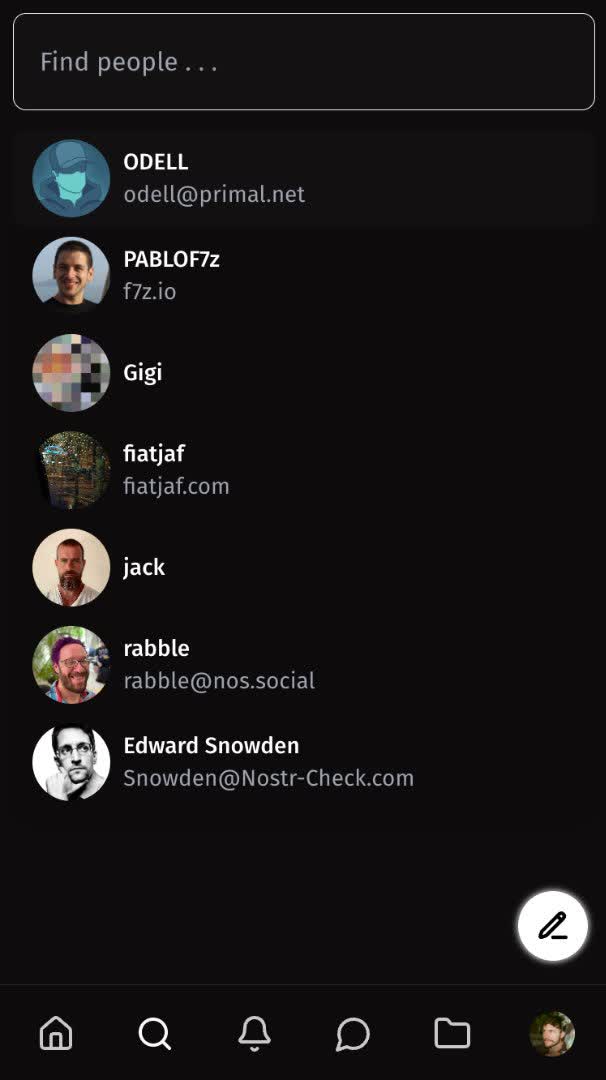 I added client side search, based on your social graph (or my social graph if you're not signed in). It pulls all your contacts, your contacts' contacts, and indexes your web of trust locally. Believe it or not this is actually quite performant (especially if you are on a multicore machine).To be clear, this is not really search. Something like what @Pip the WoT guy is building that is not strictly local will be necessary for finding obscure people.This is essentially navigation UX, and it works great for jumping to someone's profile when you know where you want to go.