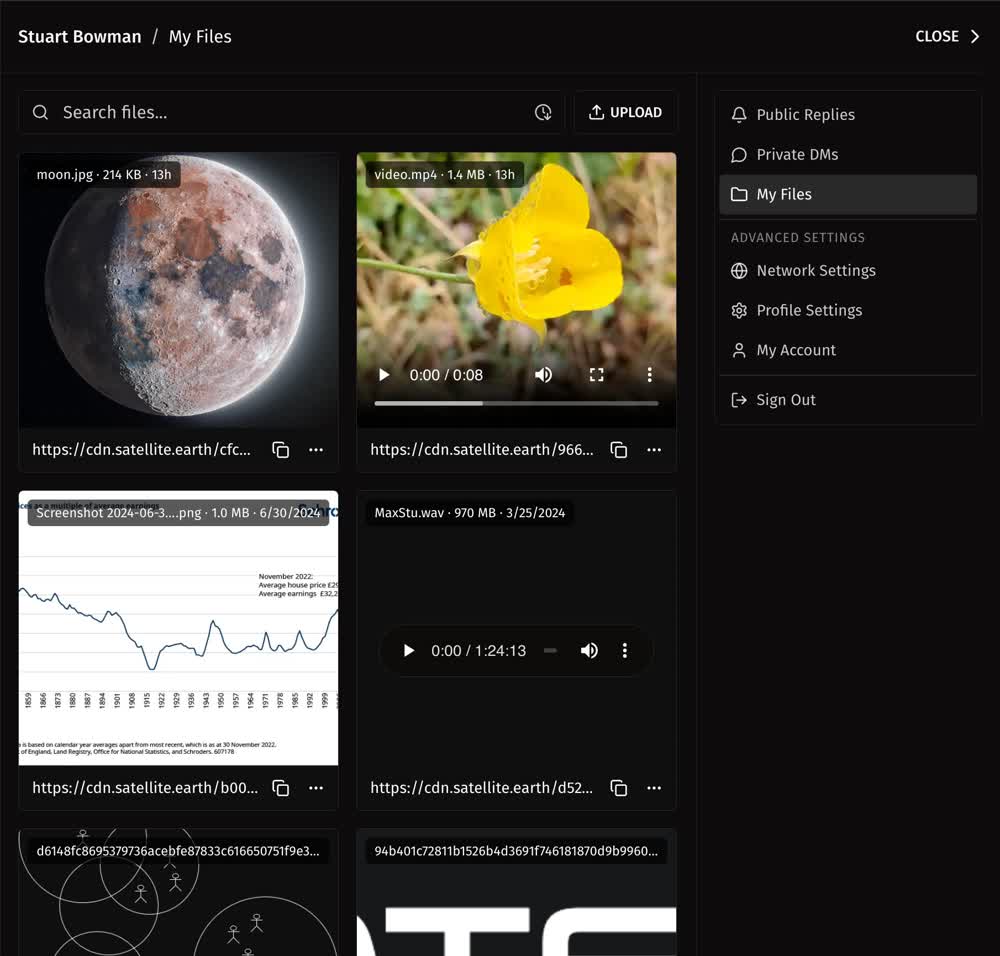 The Satellite CDN UI is much improved as well, especially if you have lots of files. The terms and cost are the same as old Satellite. You can upload big files (like > 5GB). Bandwidth is free. $0.05/GB/mo. Prepaid. Lightning only. If you want a nice blossom-compatible gallery UX to be a home for all your media on nostr, I would encourage you to check it out.