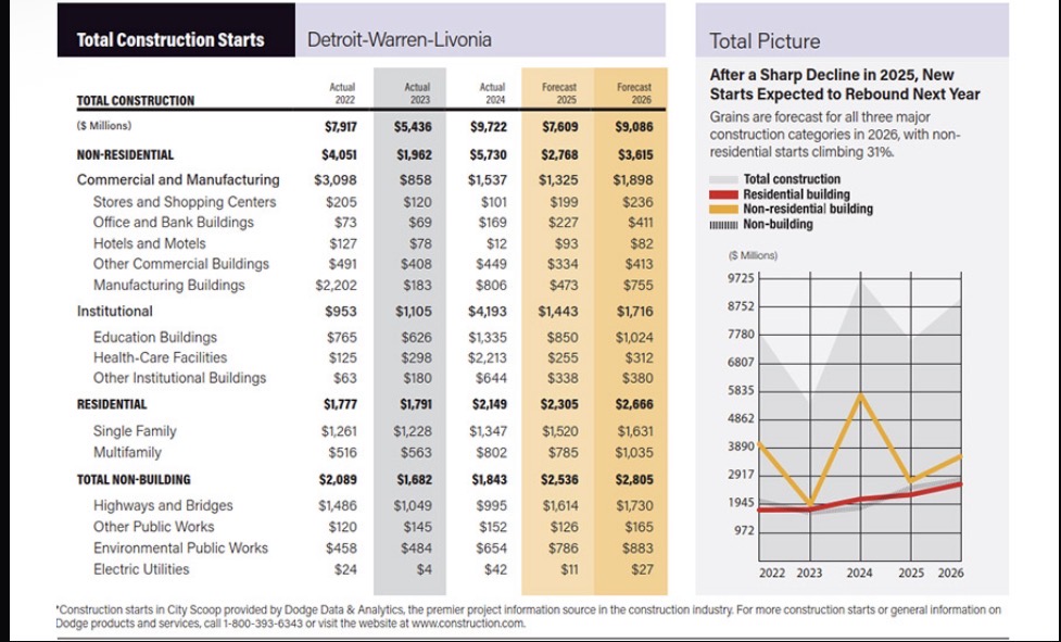 “While single-family housing permits within the city remain limited, multifamily, health care and public projects are driving much of the current activity—signaling a broader shift toward denser, community-oriented investment in Detroit’s urban core,” he says.He adds that an upcoming mayoral transition, following the Nov. 4 election, will be one of the most significant factors shaping Detroit’s immediate future.