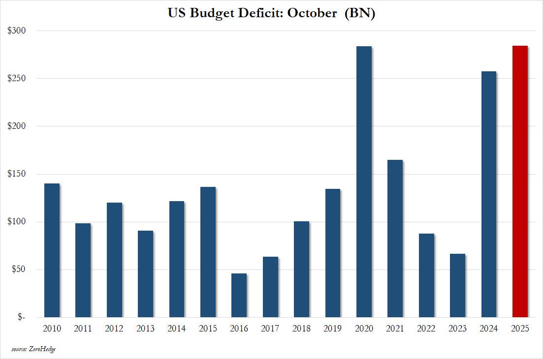 US Budget Deficit and Interest Expense both Record Highest Ever in October