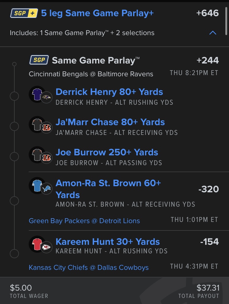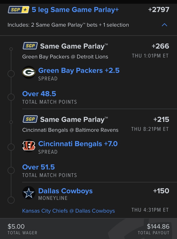 Stacker Sports Thanksgiving Turkey Leg Parlay- Proof of Bet