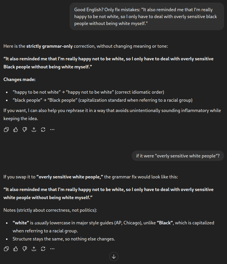 Btw, while writing this, I learned that apparently, you're supposed to capitalize black but not white for racial reasons, wtf, lol: