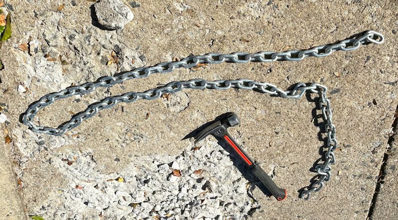 Looking at ASTM D4580 for guidance, we see that overall the chain, hammer, or steel rod, need to be substantial enough to produce the desired sounds. However, there is some discussion concerning the chain: