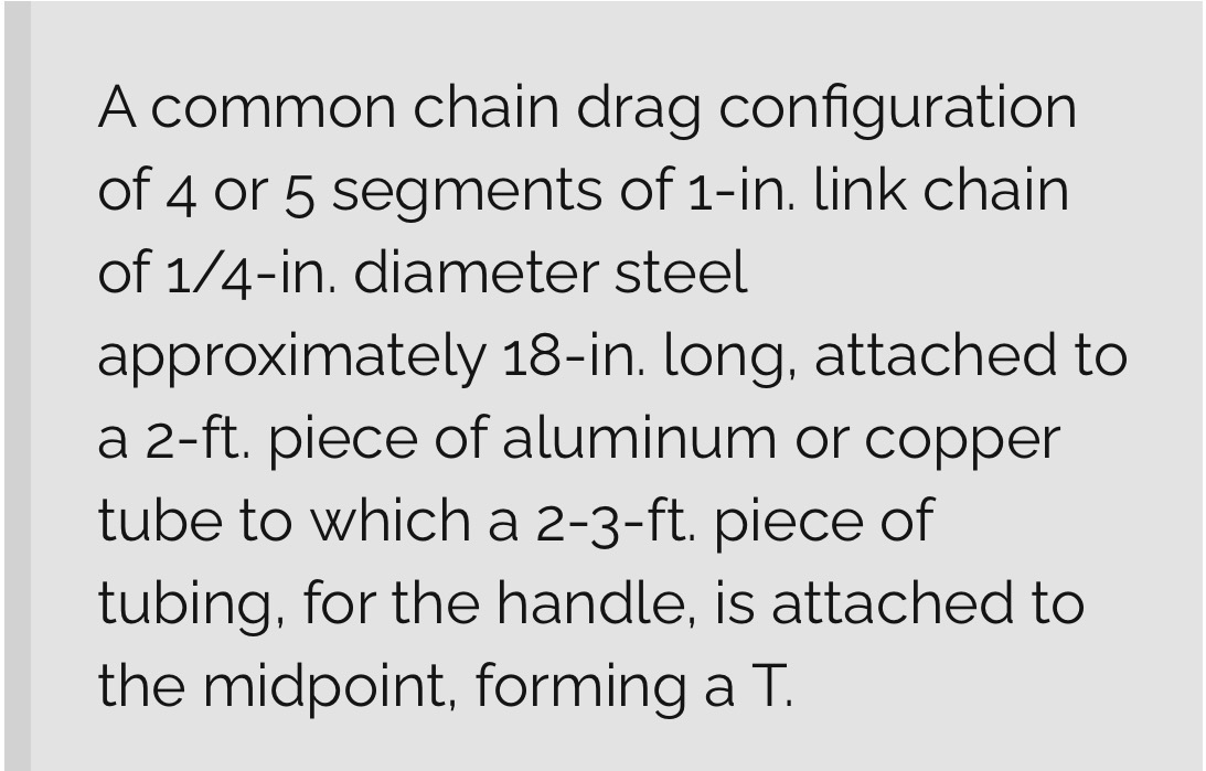 You will get a good result by using a heavy-duty chain from 1/4 to 5/16 in., or even 3/8 in. The handle, as described in ASTM D4580, is not necessary. You will feel the impact through the chain end in your hand. Speaking as the author, I use a 5-6-ft. length of chain for the testing.