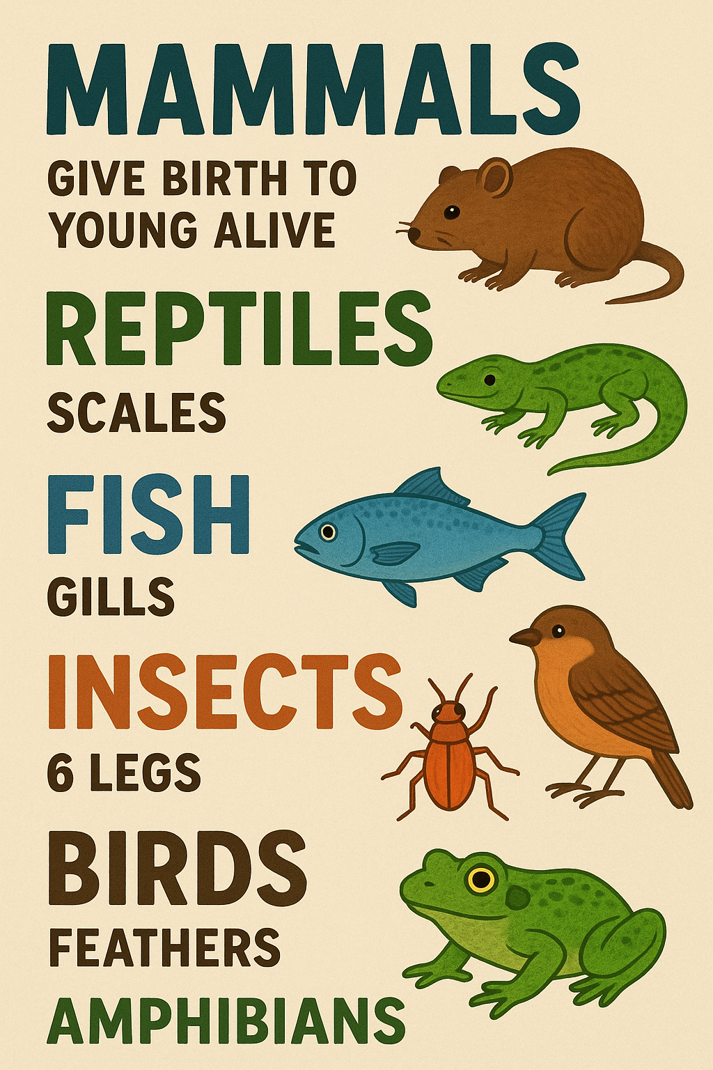 Feeling darned proud of my creativity. Usually assessment books focus on the type of animal before discussing its defining characteristic. I took the opposite approach - I used characteristics as a starting point so that my son could remember the different types of animals deeply.