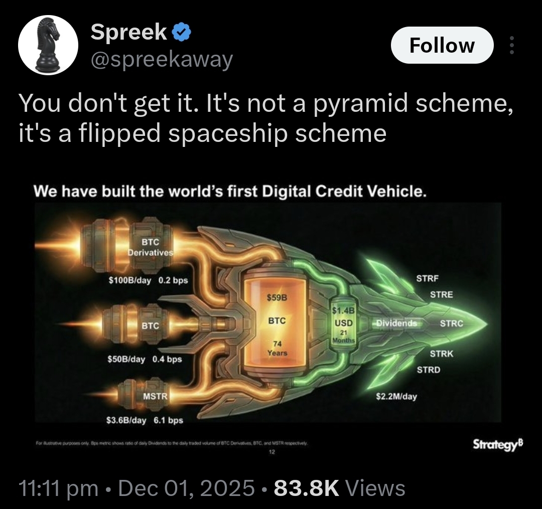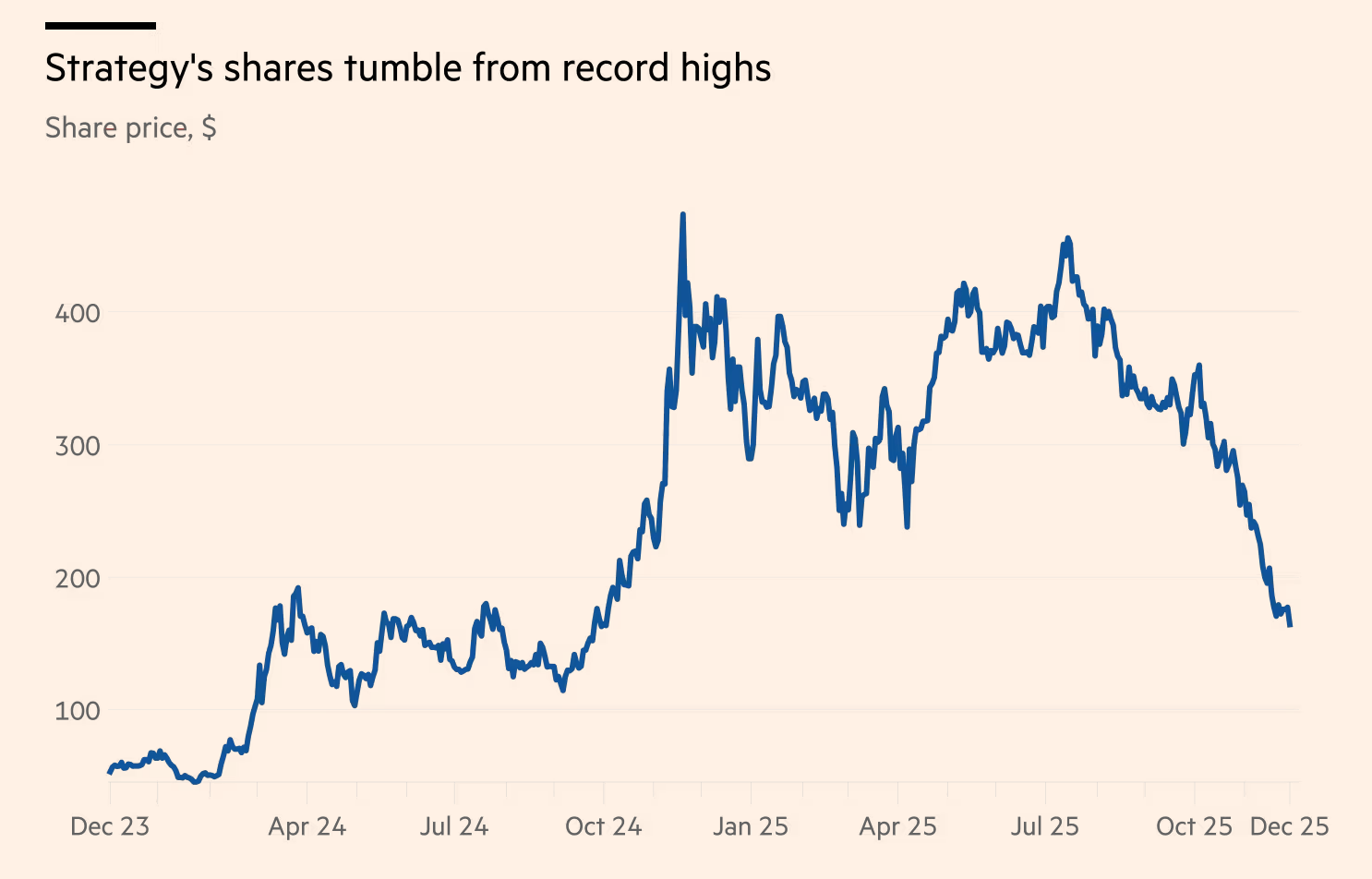 The company buys bitcoin by issuing shares, convertible debt and new preferred equity instruments. The move highlights how Strategy is bracing for its share price to fall even further. The company will in particular need cash to repay its $8.2bn worth of convertible debt holders if its share price does not rise.