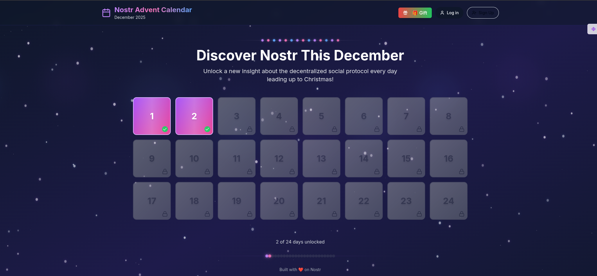There was one of these made by goose for AI vibe coding (#1297237) and now here is one for nostr. I wonder if we're going to see a lot of these this holiday season...