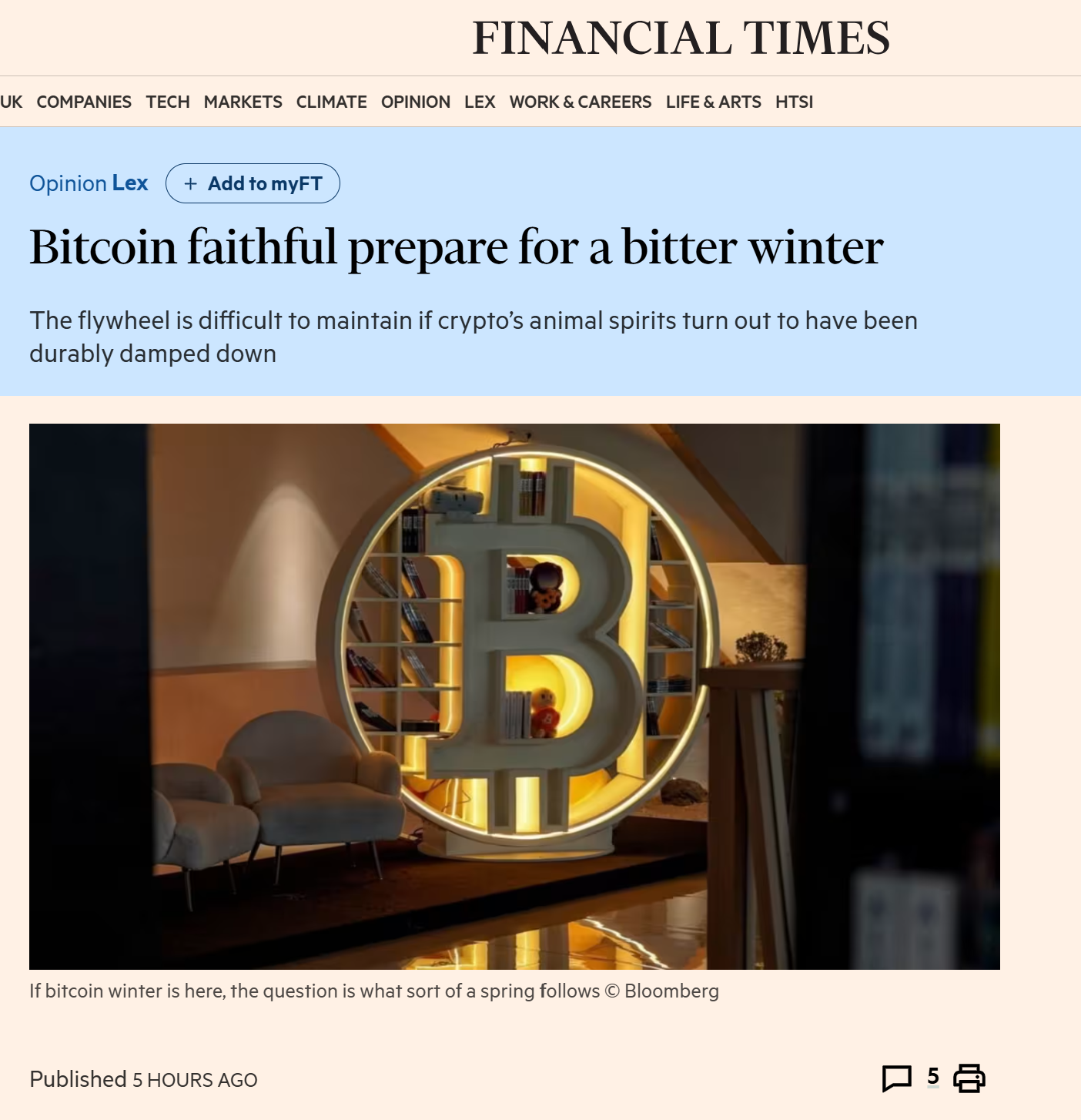 Michael Saylor is one who is getting ready for things to get worse before they get better. ... This strategy is not working so well at the moment. The stock is down more than 30 per cent over the past month, underperforming its underlying bitcoin. On Monday, Saylor said Strategy had set aside $1.4bn to hold not bitcoin but US dollars, as a “reserve” to cover dividend and coupon payments on its various capital instruments. Crypto-purists may flinch at the idea of Strategy holding common-or-garden cash. Adding some fiat currency to the balance sheet — just like a regular company might — isn’t a bad way to ride out the coming winter, though.