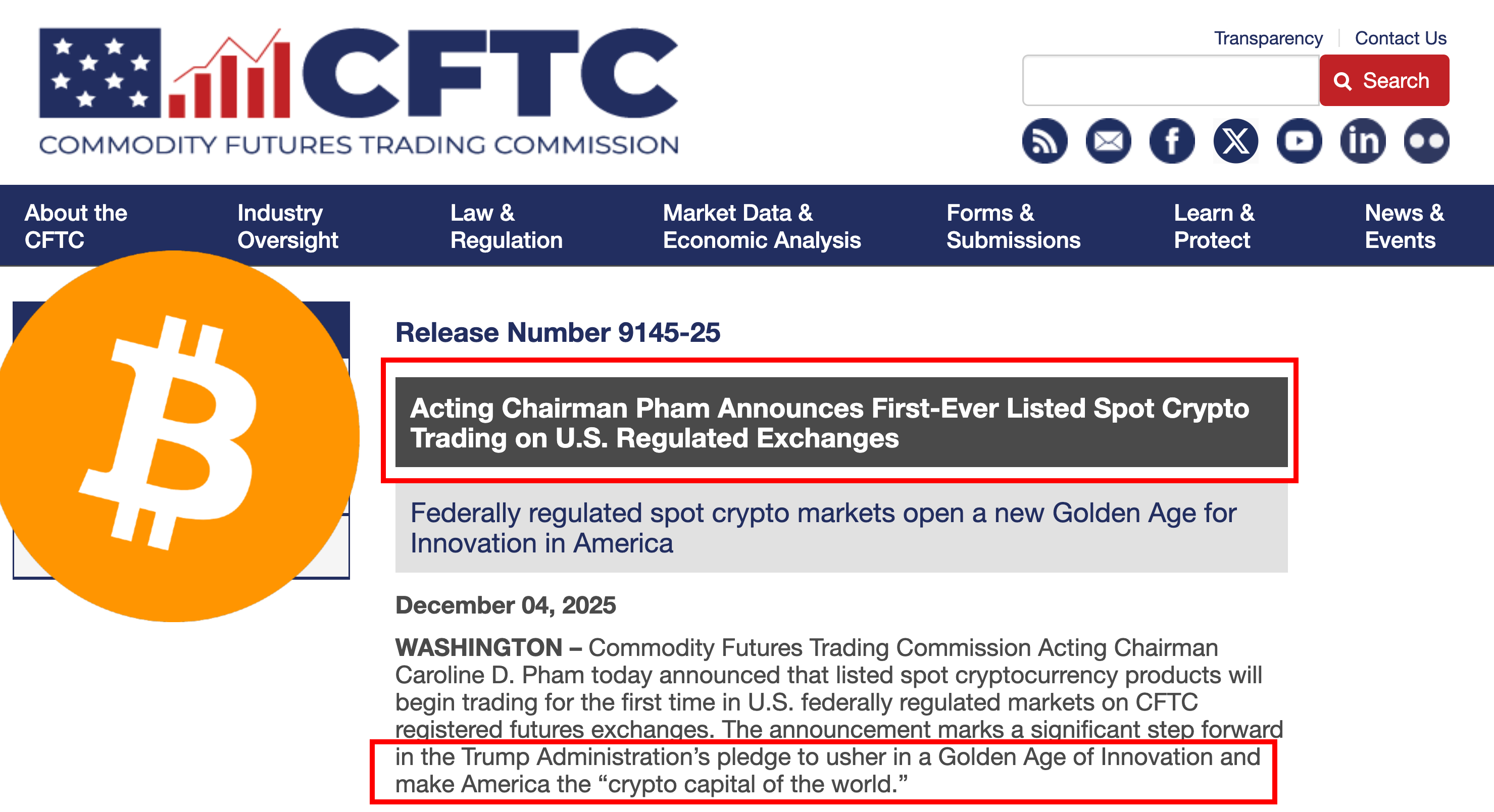For the first time in HISTORY, spot trading of Bitcoin will be allowed on traditional US commodity exchanges. The CFTC said this is to make the US the "crypto capital of the world."