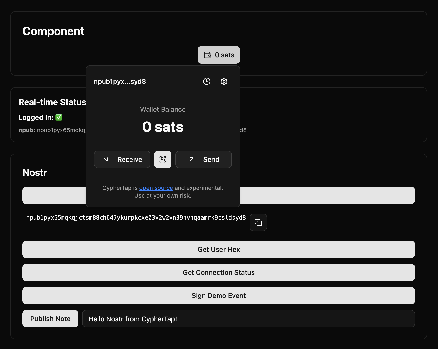 Stop reinventing the wheel for every Nostr app. CypherTap gives you a complete authentication and payment solution with both a ready-to-use UI component and a comprehensive programmatic API - drop it in your Svelte app and you're done.