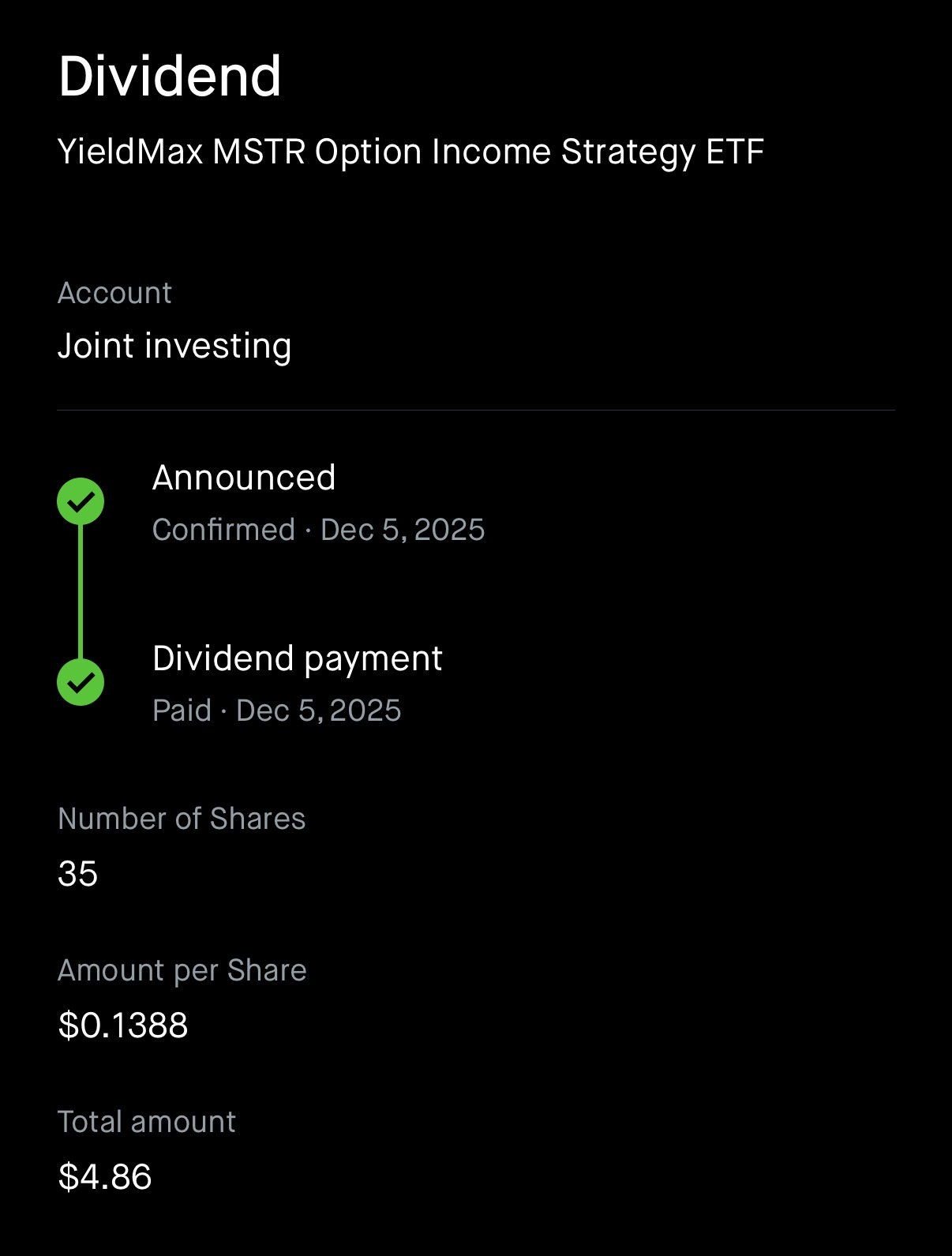 Which is good for a total of 5,423 sats! for owning 35 shares.
