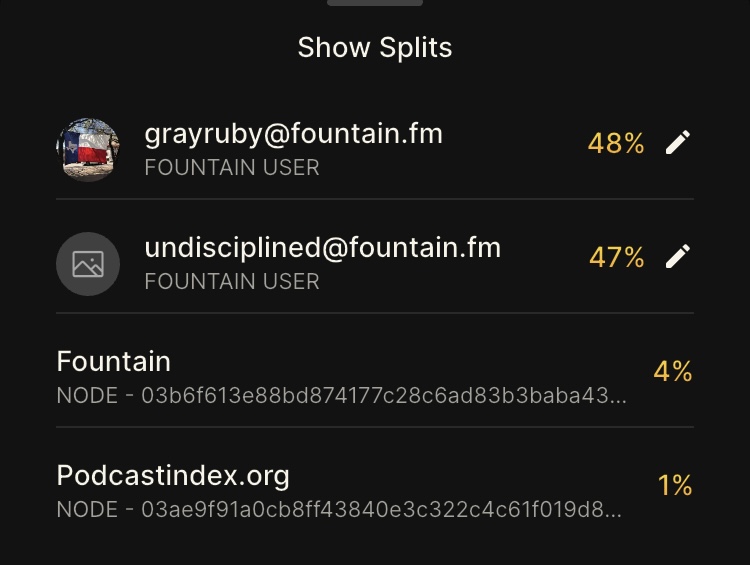 Btw, can you check the Fountain splits. It doesn't look like they're all coming through, but some are. Hopefully we aren't just bleeding sats into the ether.