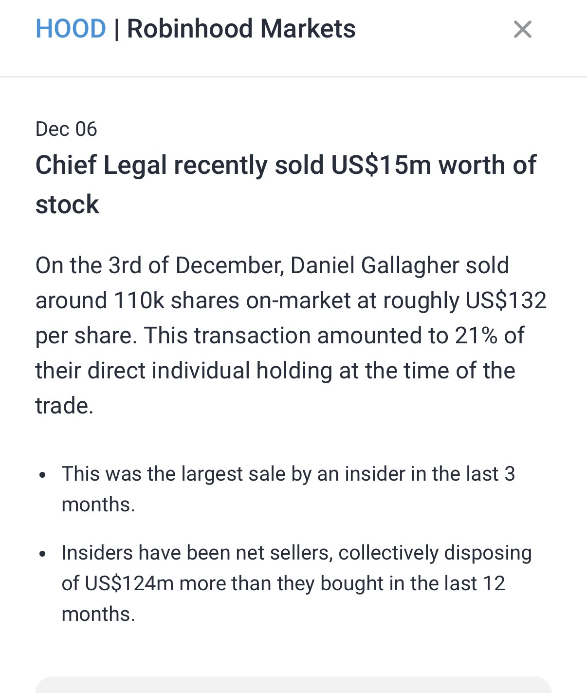 Insiders selling Hood